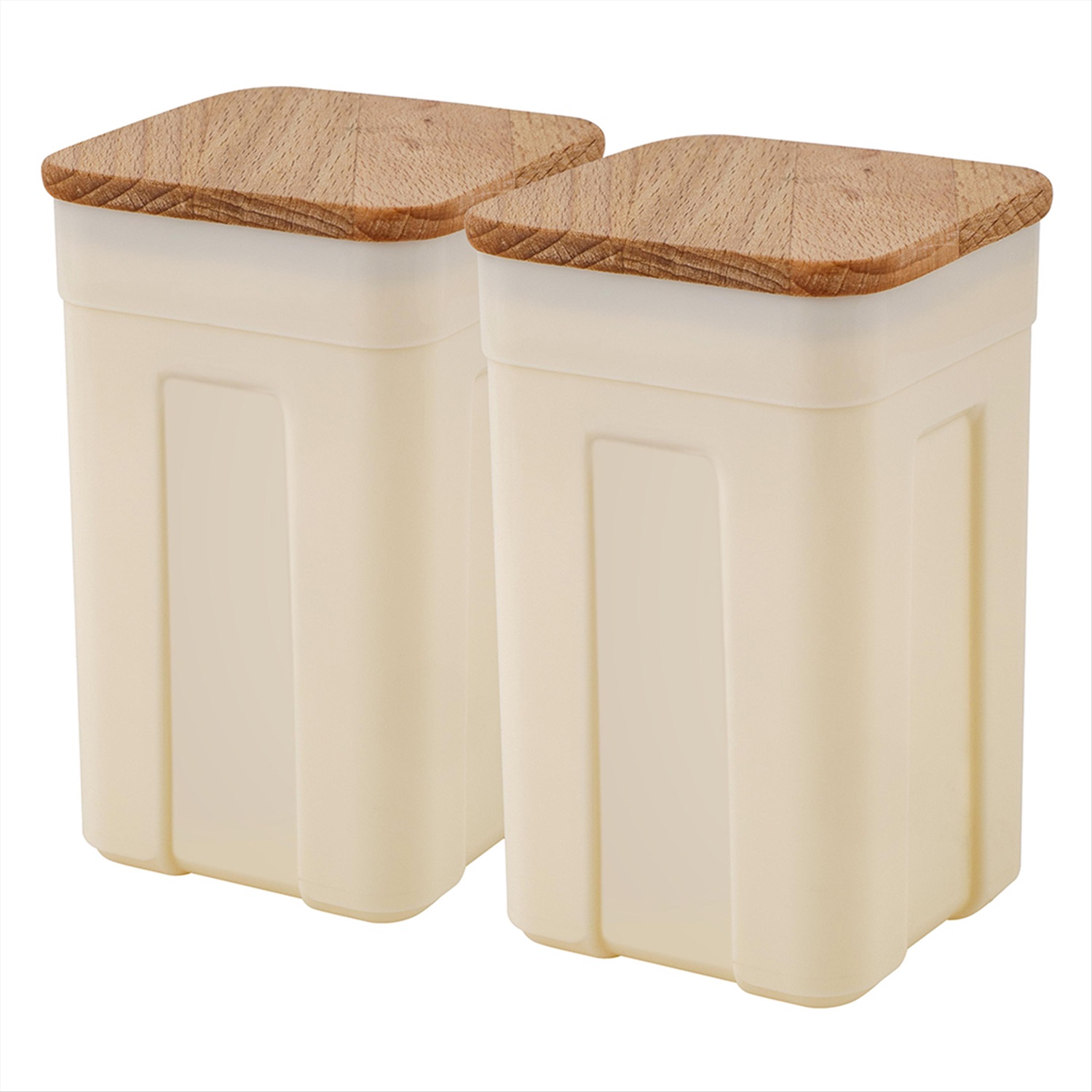 * Набор контейнеров для специй состоит из 2-х прочных емкостей из пищевого пластика с деревянными крышками и наклейками с надписями "pepper" (перец), "salt" (соль)