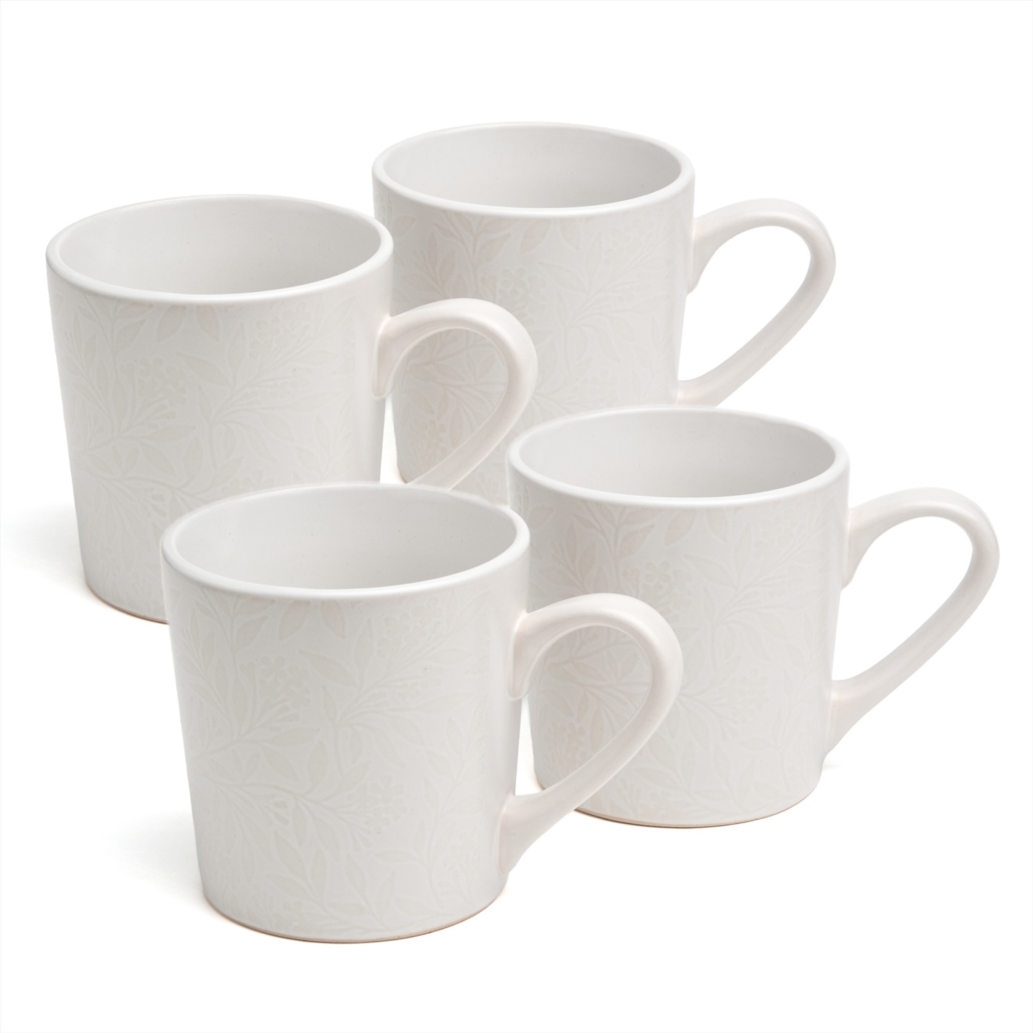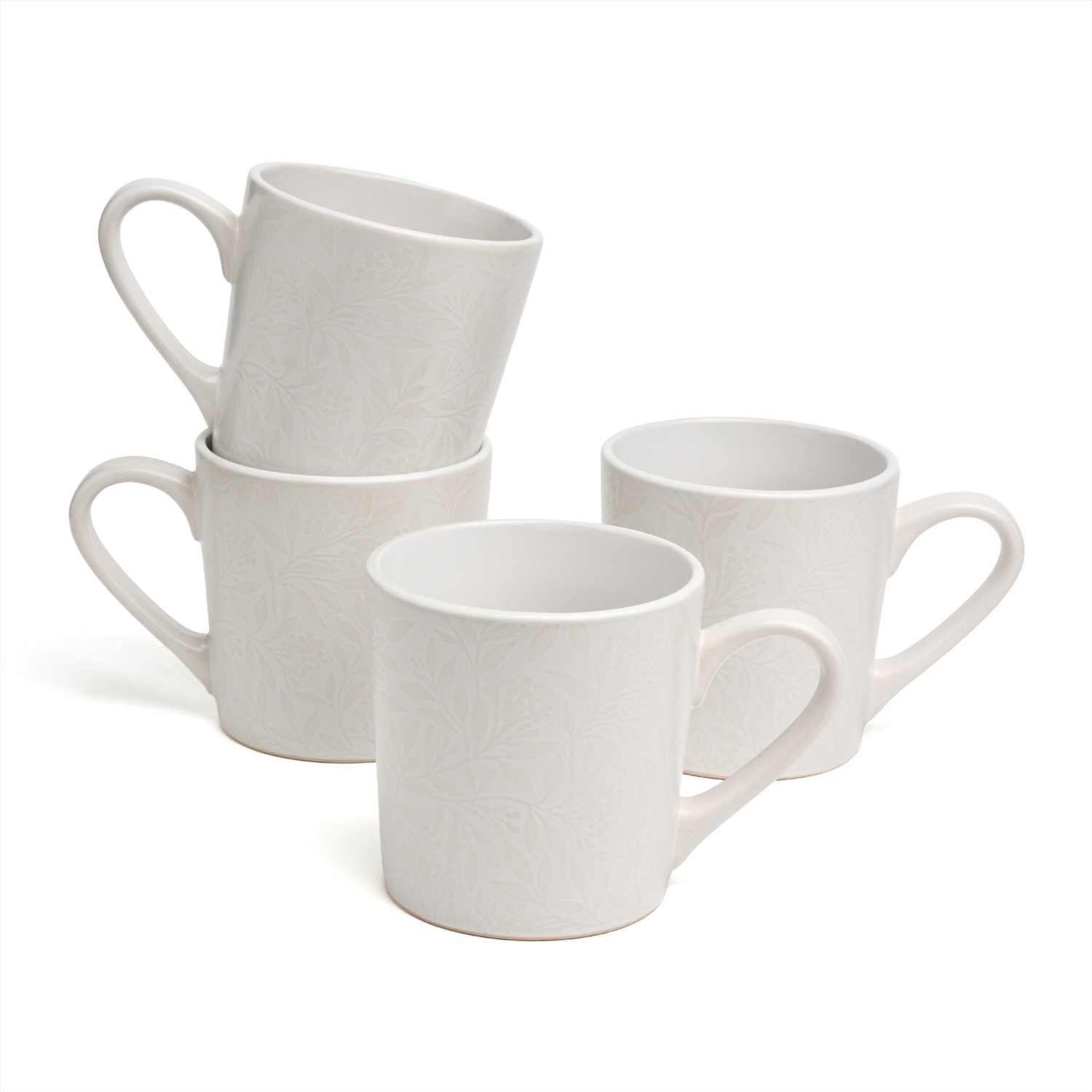 Благодаря сочетанию однотонного фона с красивыми рельефными акцентами в виде трав и цветов, эта посуда удачно впишется в любой интерьер.
