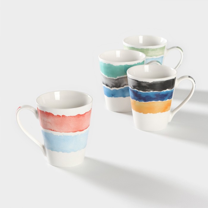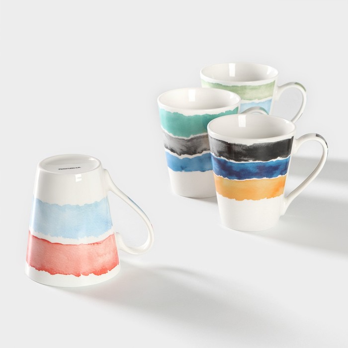 Каждая кружка из набора украшена стильным рисунком в виде разноцветных полос, который добавляет нотку современности и оригинальности. Кружки объёмом 310 мл идеально подходят для утреннего кофе, чая или любого другого напитка, который вы предпочитаете.