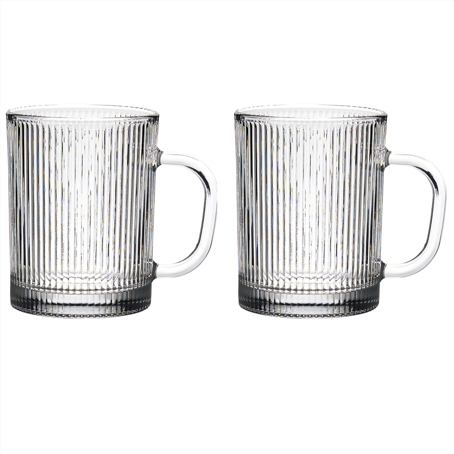 Кружки обладают идеальным объемом в 350 мл, что делает их универсальными для самых разных напитков – от ароматного кофе и чая до освежающих коктейлей, и соков. Прозрачное стекло позволяет наслаждаться не только вкусом, но и красотой напитка, подчеркивая его насыщенные цвета и текстуры.