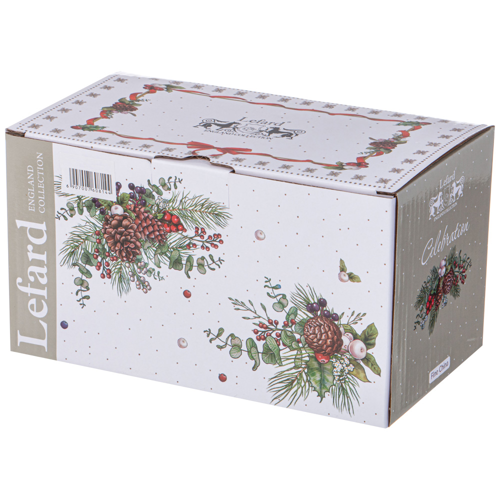 ТМ LEFARD представляет коллекцию "Торжество - Celebration" - изящная сервировка Новогоднего стола. Изделия с любимым символом и атрибутом Нового Года - Елкой выполнены на тонкостенном высококачественном фарфоре. Посуда упакована в красочные коробки. Это прекрасный подарок. Продукция прошла сертификацию, безопасна для контакта с пищевыми продуктами. Не рекомендуется использовать в микроволновой печи, мыть в посудомоечной машине.