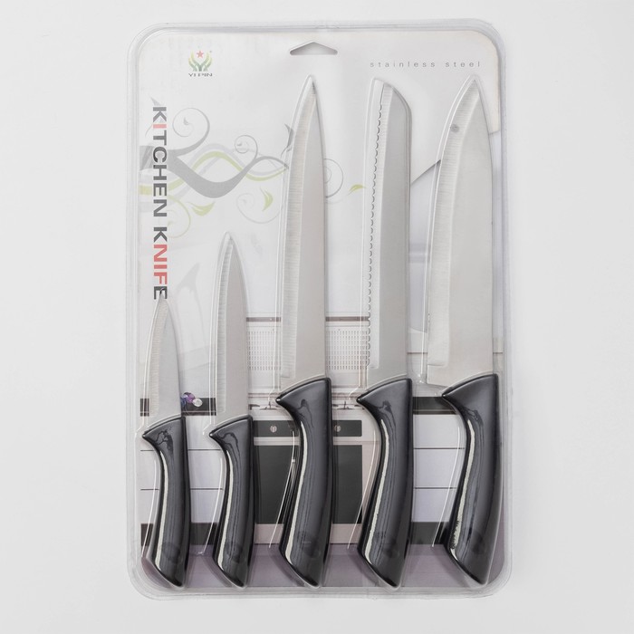 Габариты: 38 x 25 x 3; Страна: Китай; В боксе: 48 набор; Состав: Металл, пластик; Материалы: металл, пластик; Фасовка: по 1 набор; Индивидуальная упаковка: Блистер; Габариты товара: 38 см × 25 см × 2,5 см; Сертификат: СТР; Набор: Да; Цвет: Чёрный; В наборе, шт.: 5; Длина лезвия, см: 8,5, 12,5, 19,5, 20; Материал ручки: Пластик; Рисунок: Нет; Тип покрытия: Без покрытия; Материал лезвия: Нержавеющая сталь