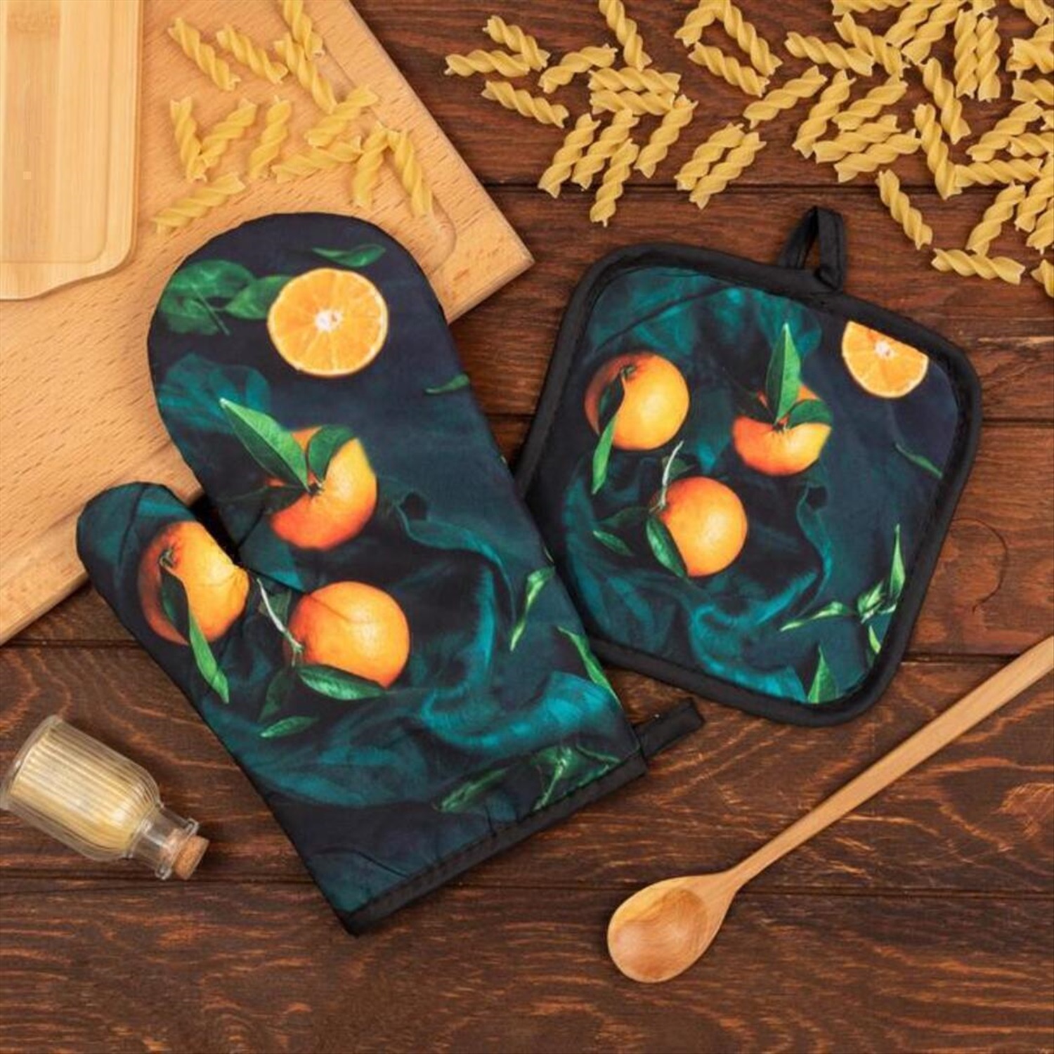 Набор кухонный 2 предмета (прихватка+рукавица) Доляна<6491109 Апельсины, прихватка 17*17+рукавица 26*16>