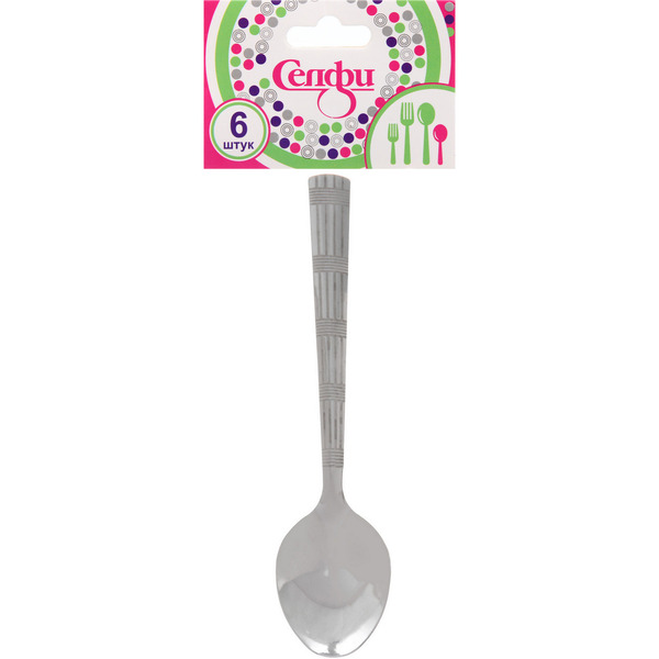 Бренд: Селфи; Индивидуальная упаковка: Пакет с хедером; Материал: Металл; ШтрихКод: 6931994455818; Страна происхождения: Китай; Тип: Ложка чайная; Количество в коробке: 100; Количество предметов в наборе: 6; Набор: Да; Цвет: Серебро; Можно мыть в посудомоечной машине: Нет