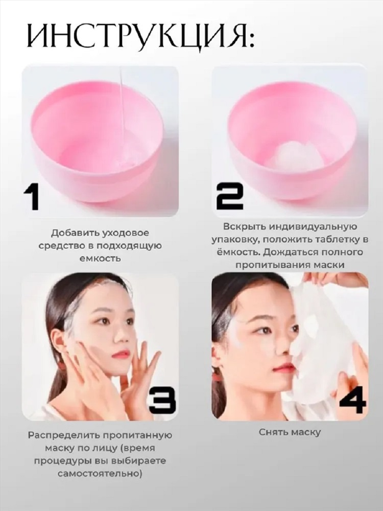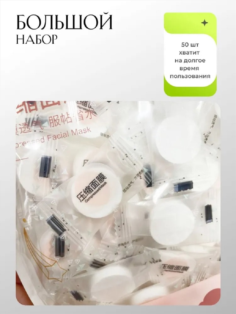 Бренд: Без бренда Маска таблетка прессованная из нетканого полотна 50 шт. Тканевая маска таблетка не является косметическим средством и является тканевой основой для жидких составов. Хранить в сухом и проветриваемом месте. Хранить вдали от прямых солнечных лучей и влаги.Не используйте этот продукт повторно. Поместить маску-таблетку в небольшую ёмкость. Добавить около 10 мл любимой сыворотки. Дождаться полного впитывания жидкости в таблетку. Расправить и наложить на лицо на 1015 минут. Снять маску. Остатки распределить лёгкими массажными движениями или промокнуть салфеткой.
