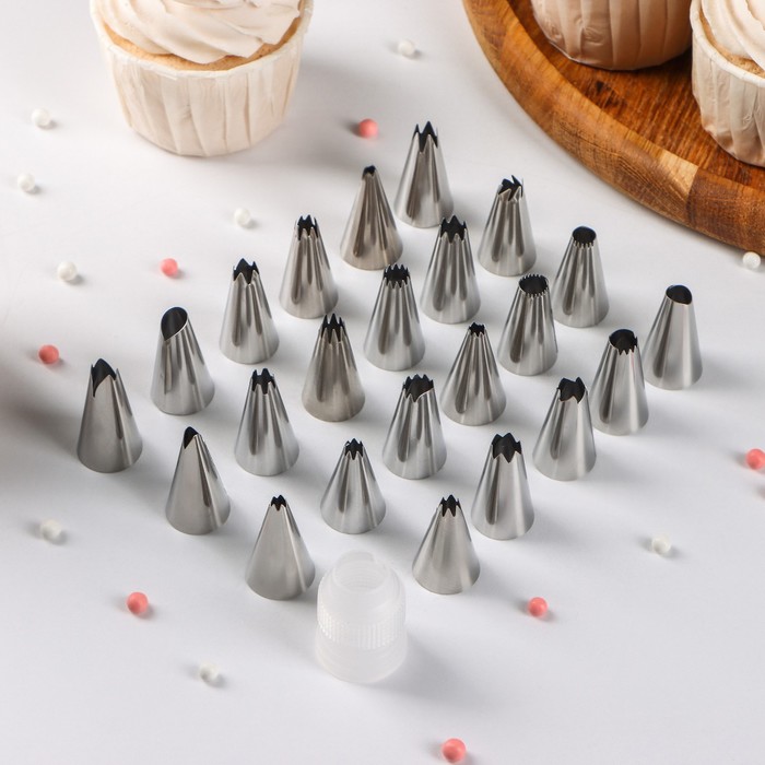 Насадки предназначены для нанесения на выпечку необычных украшений из крема. Пользоваться изделиями просто: достаточно присоединить насадку к универсальному кондитерскому мешку.