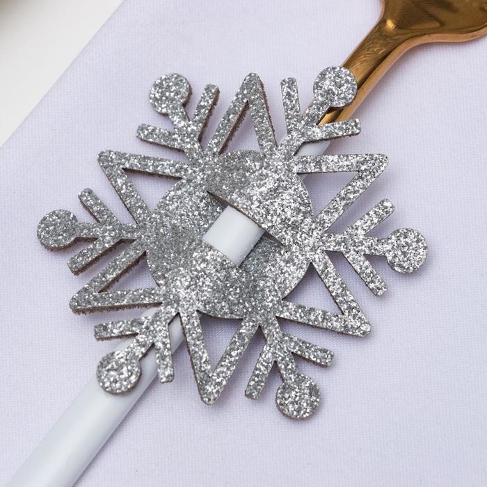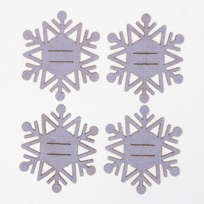 Набор новогодний для декора столовых предметов «Снежинка», 4 штуки, цвет серебро, 6.5×7.5 см, 100% п/э, фетр