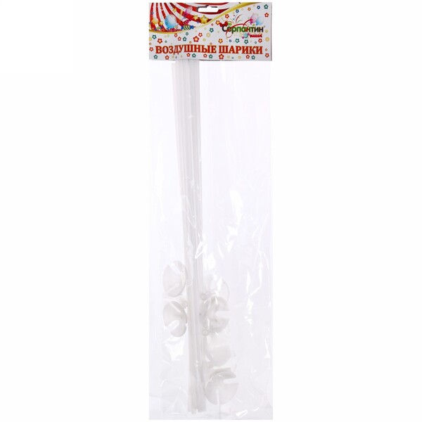 Бренд: Серпантин; Индивидуальная упаковка: Пакет с хедером; Материал: Пластик; ШтрихКод: 6931993872449; Страна происхождения: Китай; Тип: Палочка для шаров; Количество в коробке: 240; Количество предметов в наборе: 10; Цвет: Белый; Размер: 42 см; Рисунок: Нет