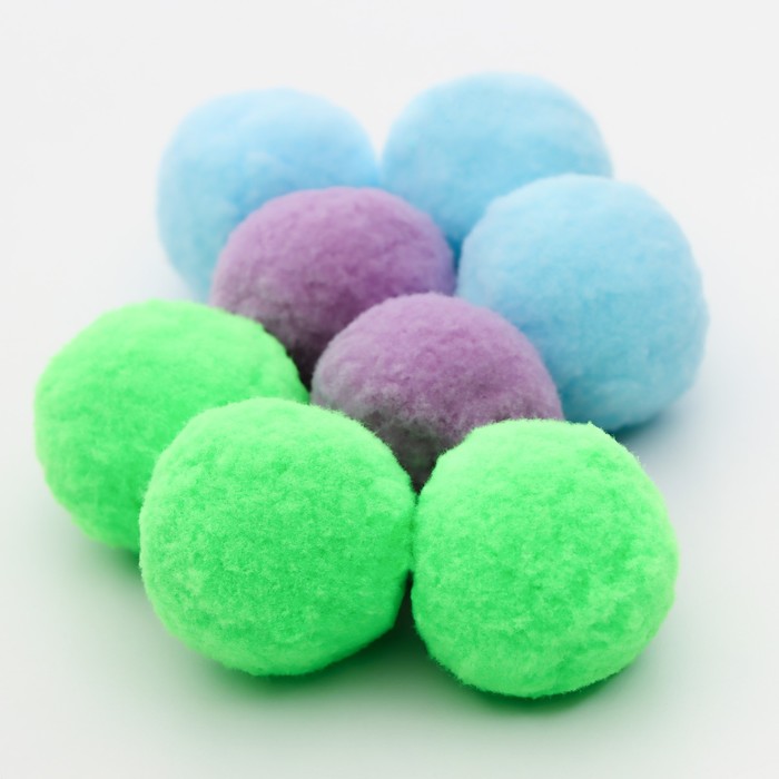* Безопасный материал: плюшевые шарики изготовлены из мягкого текстиля, что делает их безопасными для жевания и игры.
