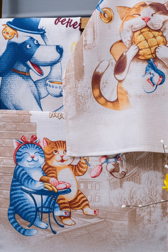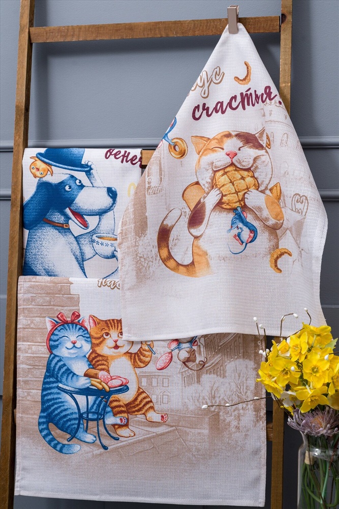 Состав: 100% хлопок Модель: Набор полотенец Вкусное настроение Тип товара: полотенце кухонное Материал: вафельное полотно | вафельное полотно Бренд: Натали Суслова Назначение: для кухни Рисунок: надпись | зверюшки Сезонность: лето | осень | весна | зима Этот набор кухонных полотенец Вкусное настроение станет незаменимым аксессуаром в вашей кухне. Изготовленные из высококачественного вафельного полотна из 100% хлопка, этот материал мягкий и отлично впитывает влагу, благодаря чему быстро высушит ваши руки или посуду. Каждое полотенце имеет петельку для удобного подвешивания. Размеры полотенец составляют 60*48 сантиметров, что делает их удобными в использовании. Бежевый цвет полотенец придаст вашей кухне уют и тепло. Особенностью этого набора являются забавные рисунки кошек и собаки, которые добавят игривости и радости в вашу кухню. Будьте уверены, что с этими полотенцами ваше настроение всегда будет на высоте. Покупая набор кухонных полотенец Вкусное настроение, вы получаете не только практичный и функциональный товар, но и стильный аксессуар, который подчеркнет ваш индивидуальный вкус и предпочтения. Не упустите возможность приобрести этот уникальный набор прямо сейчас! Таблица размеров и веса