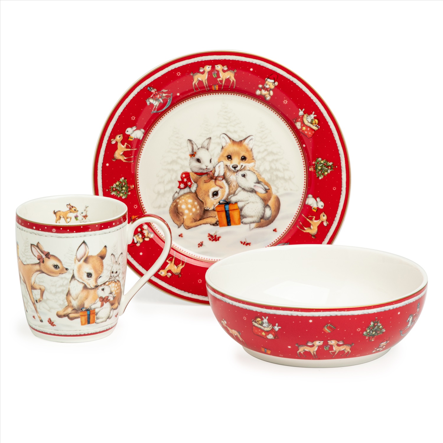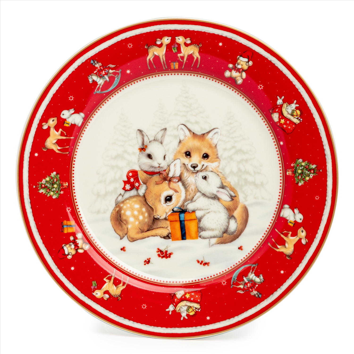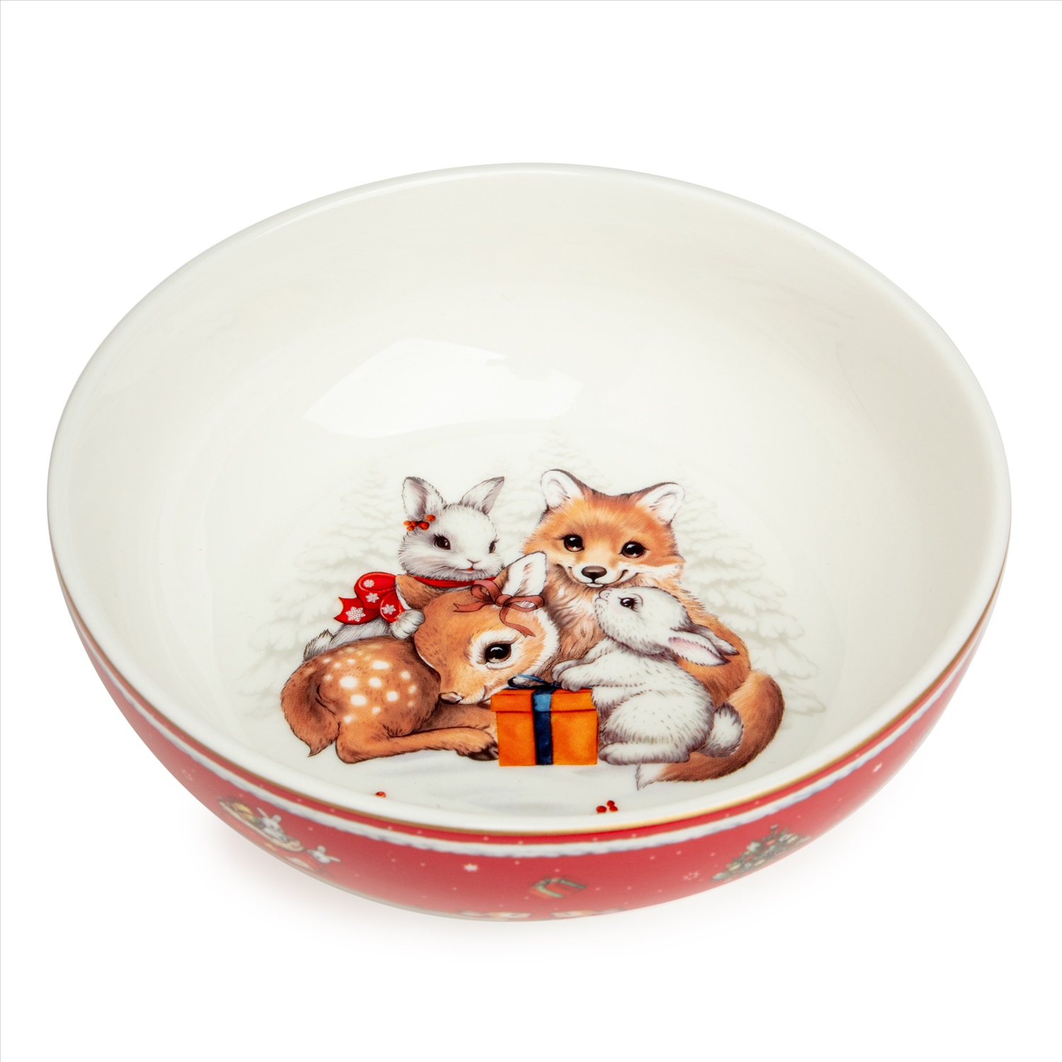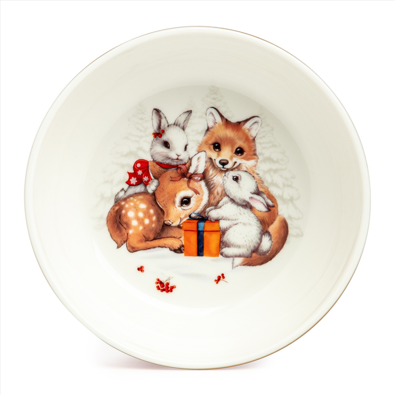 ТМ LEFARD New Year Collection для детей украсит праздничный новогодний стол и порадует Ваших детей в самые ожидаемые дни в году. С 1699 года указам Петра Первого Новый год празднуется в ночь на 1 января каждого года (по юлианскому календарю). Символом праздника стал дедушка с белой бородой, имя которого - Дед Мороз, и его помощница - девочка из снега по имени Снегурочка. Изделия с любимыми персонажами, лесными жителями и нарядной новогодней Елкой в веселом хороводе выполнены на тонкостенном высококачественном фарфоре. Посуда упакована в яркие коробки. Это прекрасный подарок. Продукция прошла сертификацию, безопасна для контакта с пищевыми продуктами. Можно использовать в СВЧ, не рекомендуется мыть в посудомоечных машинах во избежание повреждения золотой отводки (деколи) на изделиях.