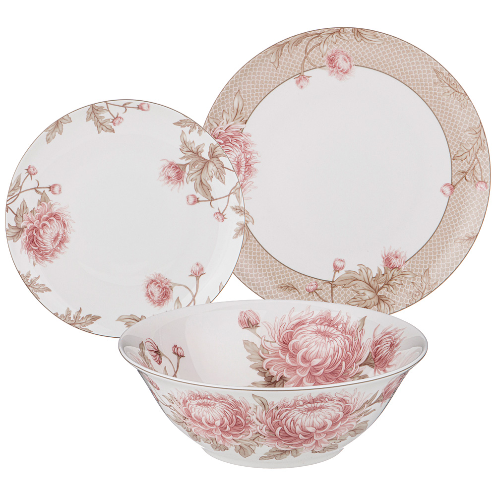 Комплектация: тарелка обеденная 25,5см - 4 шт., тарелка закусочная 20,5см - 4 шт., салатник-тарелка суповая 750мл 18см - 4 шт.