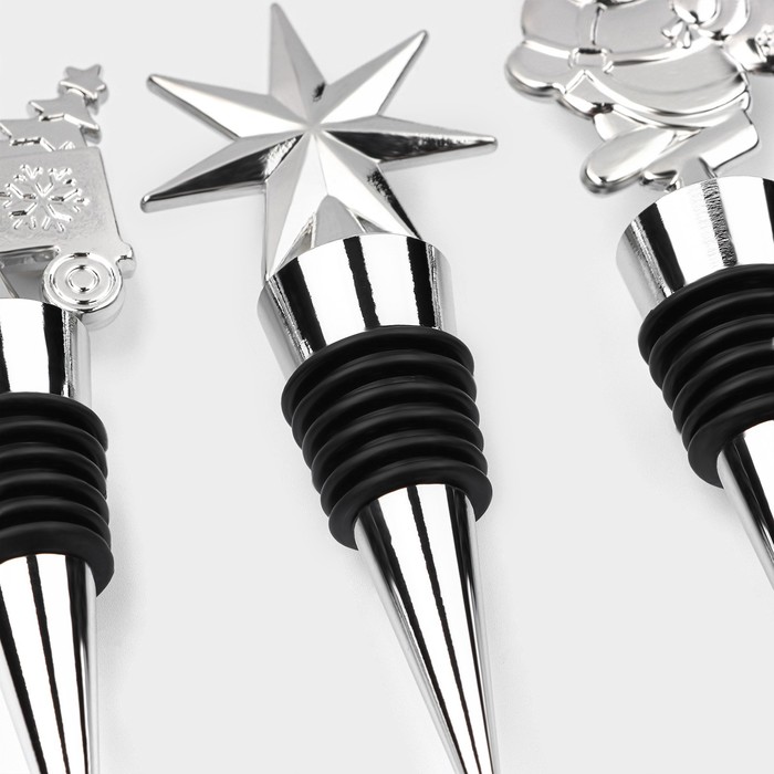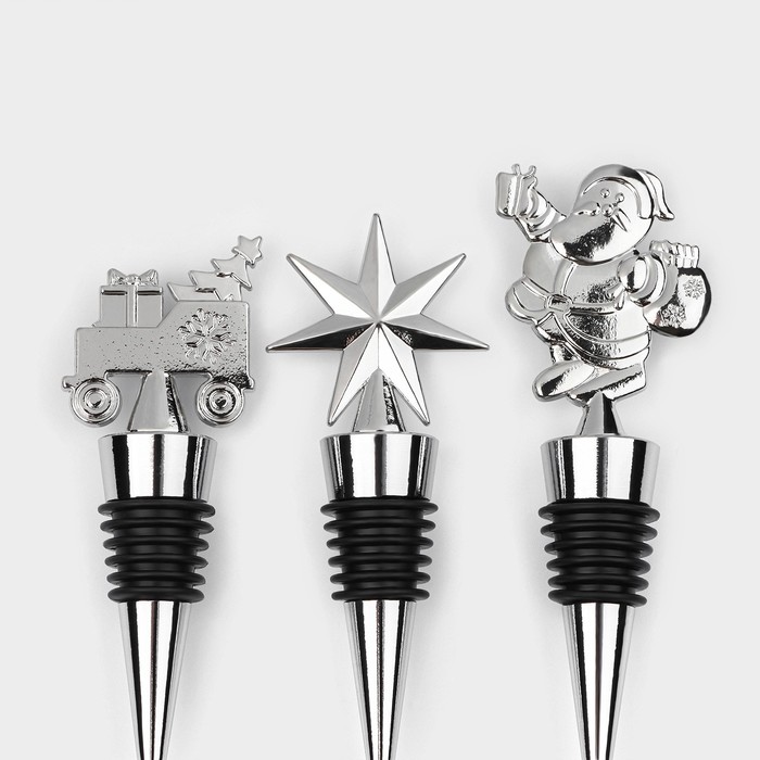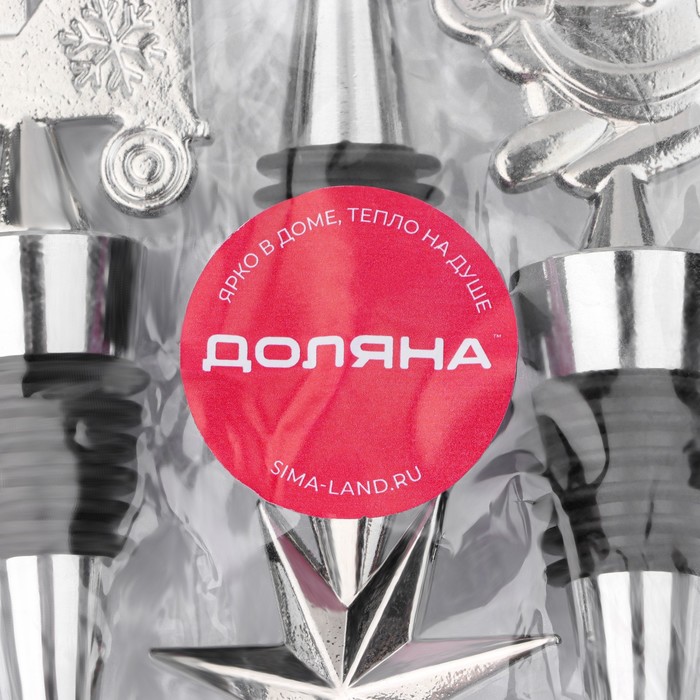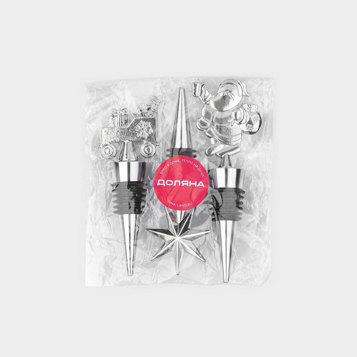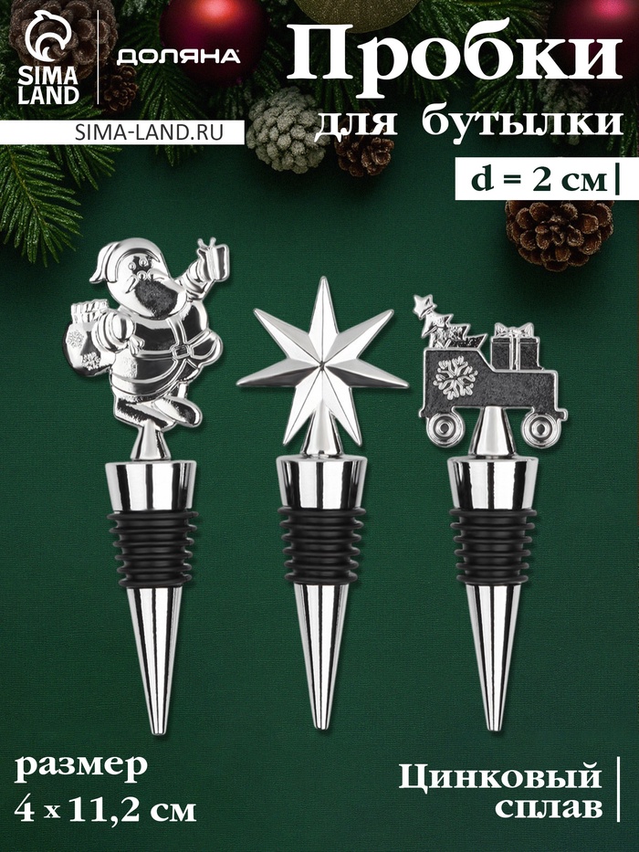 Производитель: Доляна; Габариты: 12 x 7 x 2; Страна: Китай; В боксе: 250 набор; Состав: Пластик, цинковый сплав; Материалы: пластик, цинковый сплав; Фасовка: по 1 набор; Индивидуальная упаковка: Пакет; Габариты товара: 4,5 см × 15 см × 12 см; Сертификат: ЕАС; Набор: Да; Цвет: Серебристый; В наборе, шт.: 3; Материал: Цинковый сплав; Вид пробки: Декоративная