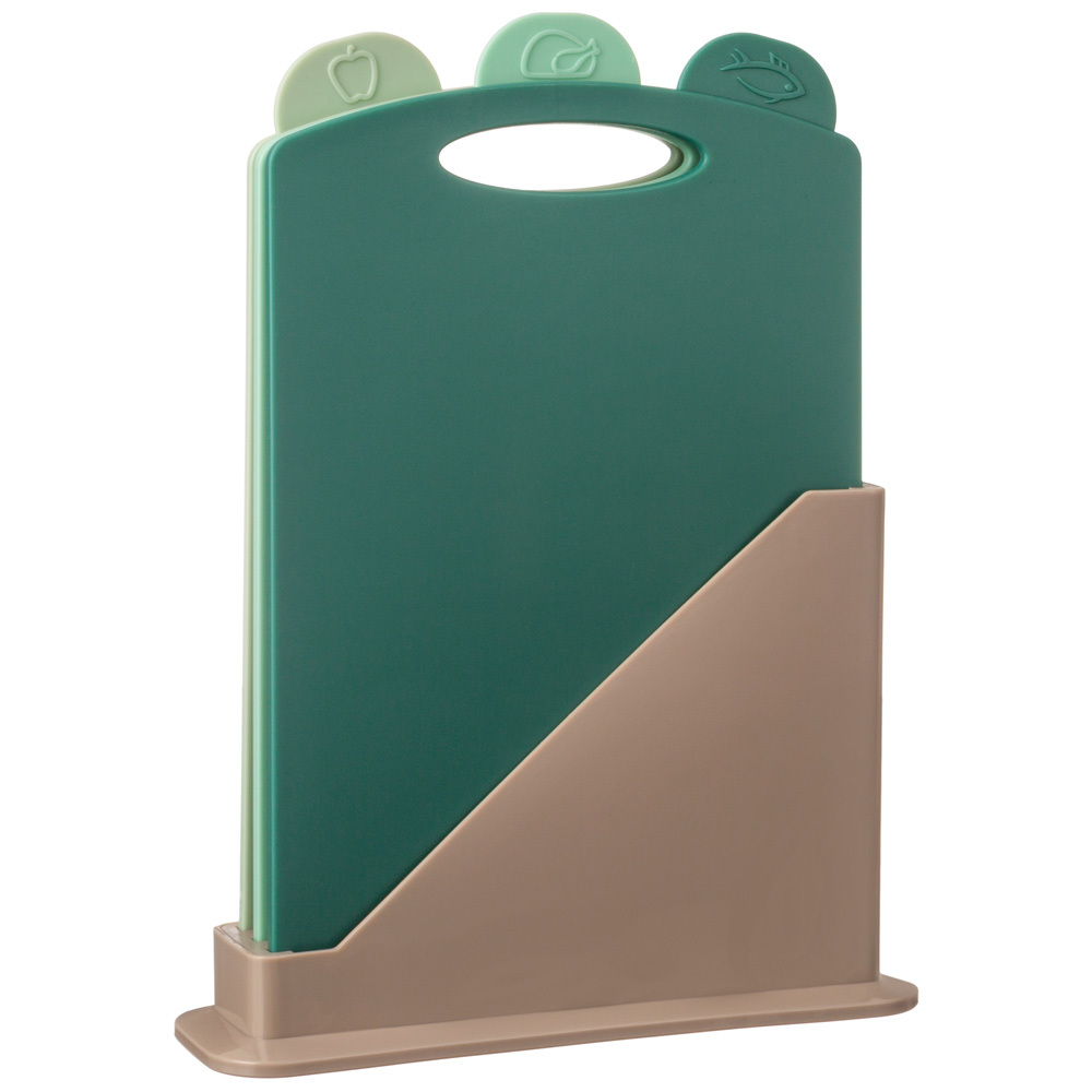 Набор кухонных разделочных досок в подставке 3 штуки - стильный и практичный аксессуар, который оценит каждая хозяйка. Изделия пластиковые, с гладкой поверхностью. Изготовлены из безопасного и экологичного материала, износостойкого. Прослужат долго, сохранив свой первоначальный внешний вид .Приятная пастельная гамма будет радовать глаз и украсит вашу кухню, впишется в любой интерьер и позволит создать уют. Можно мыть в посудомоечной машине.