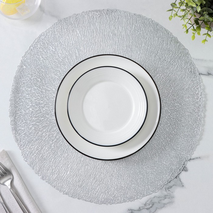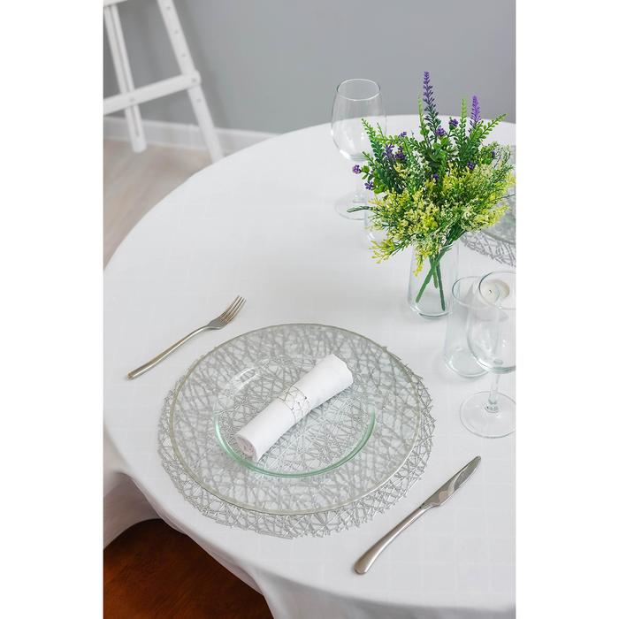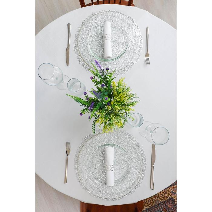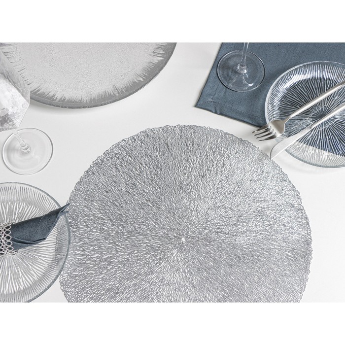 Производитель: Доляна; Габариты: 39,5 x 38 x 0,4; Страна: Китай; В боксе: 18 набор; Состав: ПВХ; Материалы: ПВХ; Фасовка: по 1 набор; Индивидуальная упаковка: Бумажный клапан; Габариты товара: 38 см × 38 см × 0,1 см; Сертификат: СТР; Набор: Да; Цвет: Серебристый; Ткань: ПВХ; Размер, см: 38 х 38; В наборе, шт.: 4; Тематика: Узоры, Однотонная; Вид упаковки: Пакет с клапаном; Рисунок: Нет; Материал: ПВХ; Рекомендации по уходу: Чистка влажной губкой/тряпкой; Состав ткани: ПВХ; Можно мыть в посудомоечной машине: Нет; Особенности: Противоскользящие, Резные; Фактурные: Да