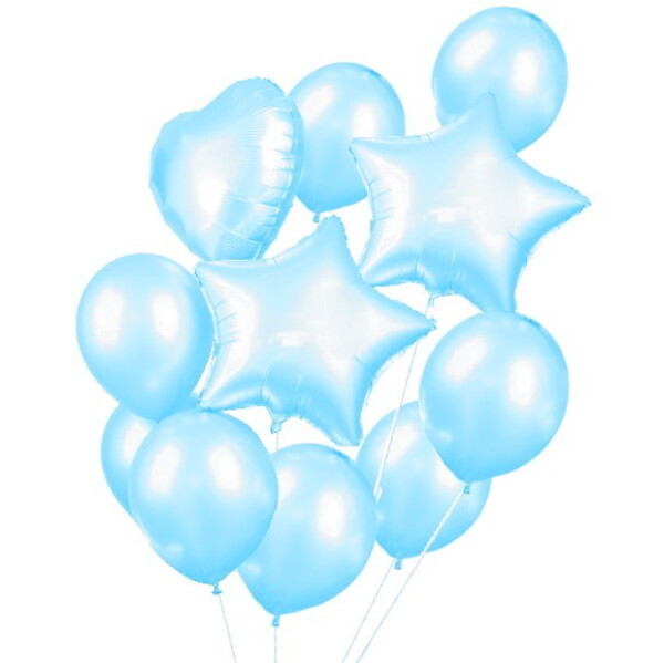 Бренд: Серпантин; Индивидуальная упаковка: Пакет с вкладышем; Материал: Латекс, фольга; ШтрихКод: 2410000042531; Страна происхождения: Китай; Количество в коробке: 200; Количество предметов в наборе: 11; Цвет: Голубой; Вид: Букет шаров; Тематика: Нейтральный; Рисунок: Нет
