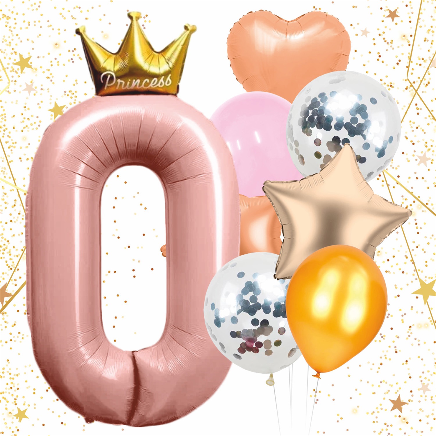 Набор шаров 8 шт "0 - Prince", розовый (цирфа + 7 шаров)