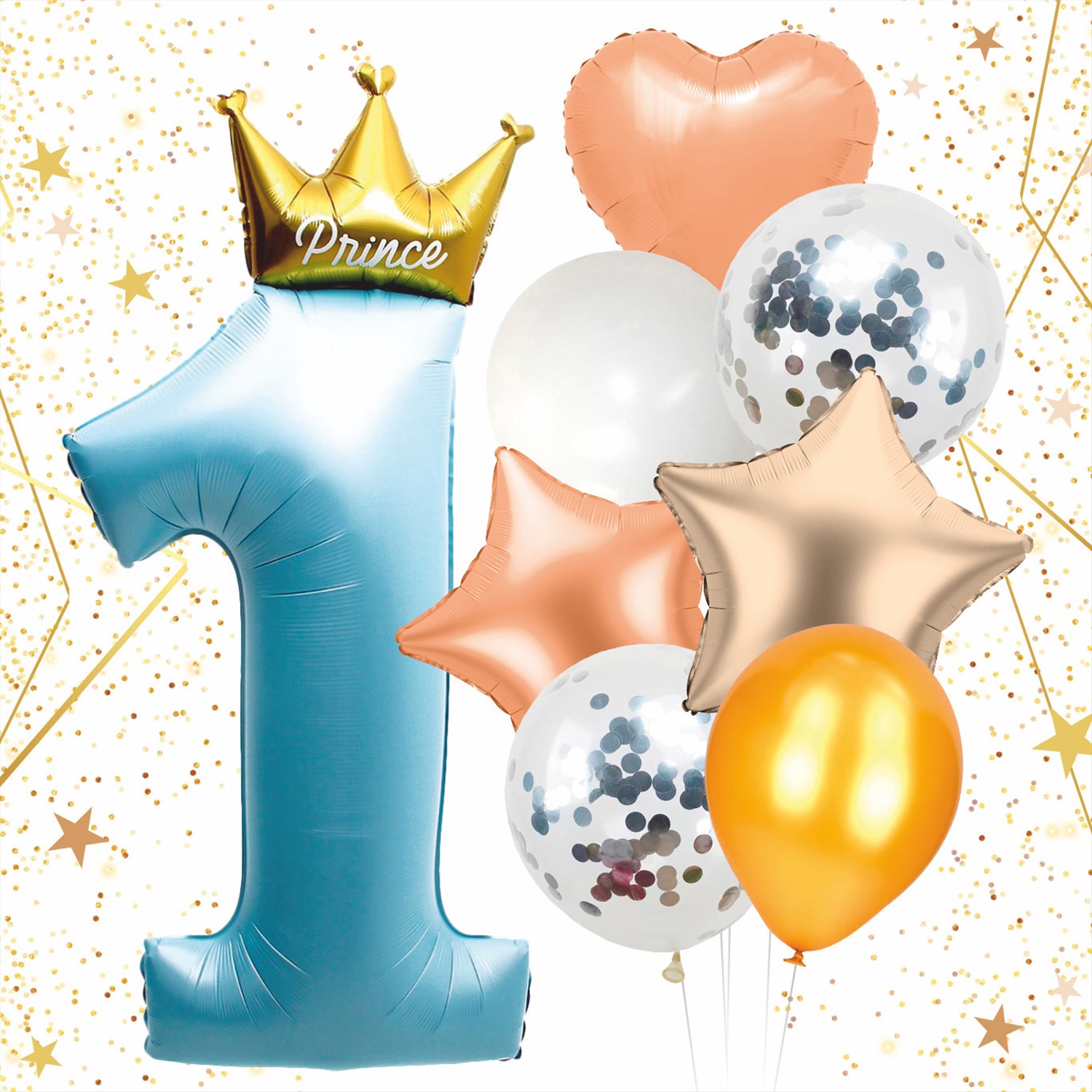 Набор шаров 8 шт "1 - Prince", голубой (цирфа + 7 шаров)