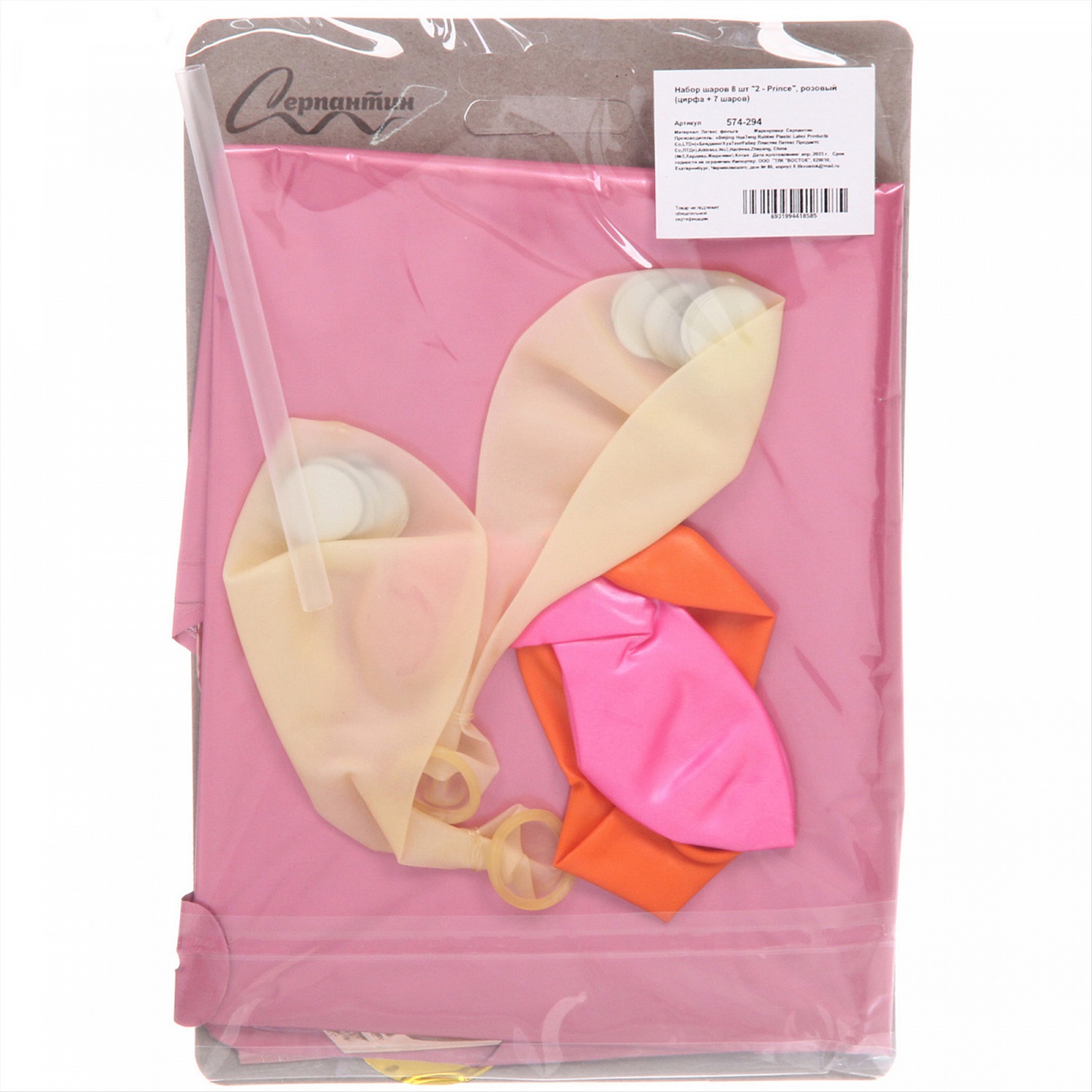 Набор шаров 8 шт "2 - Prince", розовый (цирфа + 7 шаров)