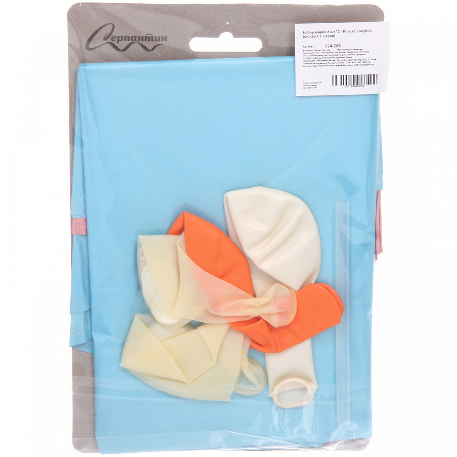Набор шаров 8 шт "3 - Prince", голубой (цирфа + 7 шаров)