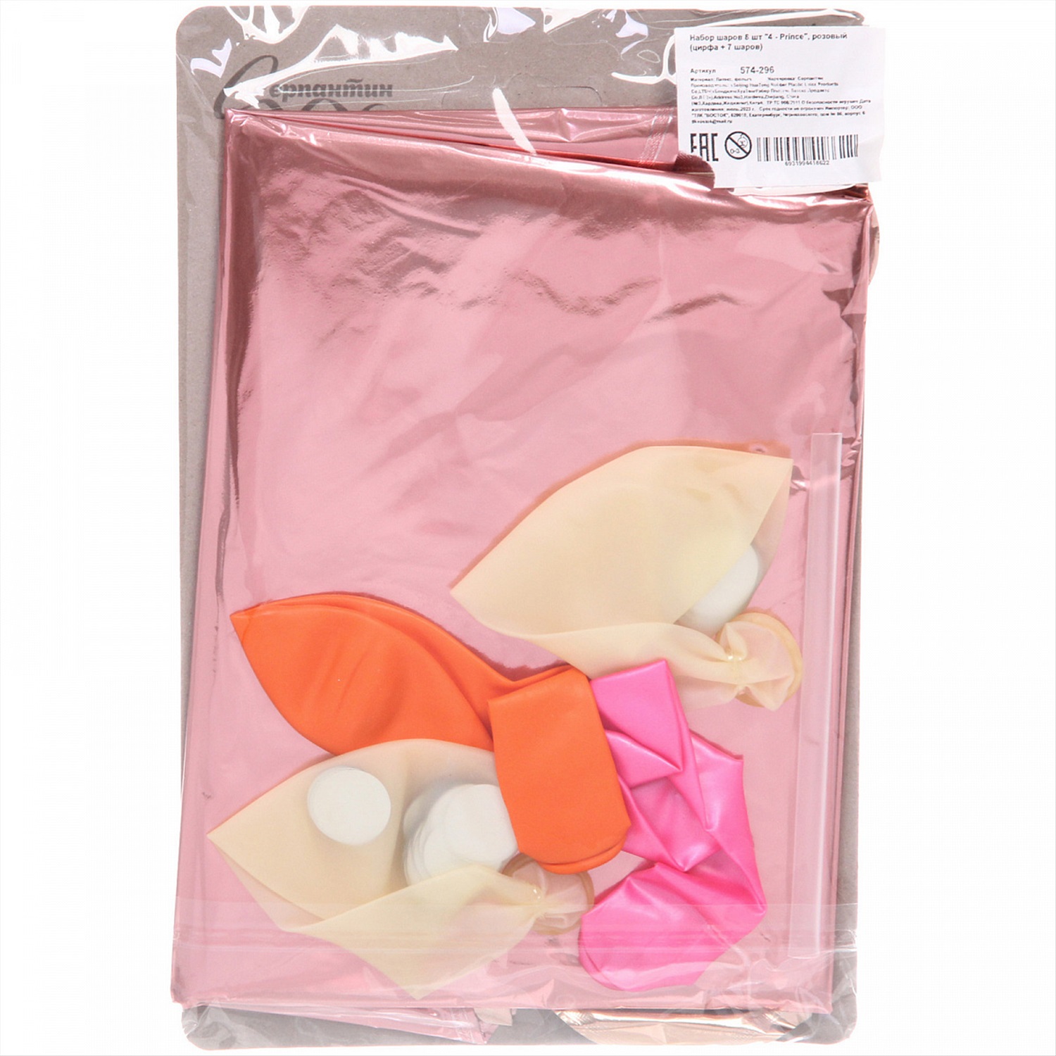 Набор шаров 8 шт "4 - Prince", розовый (цирфа + 7 шаров)