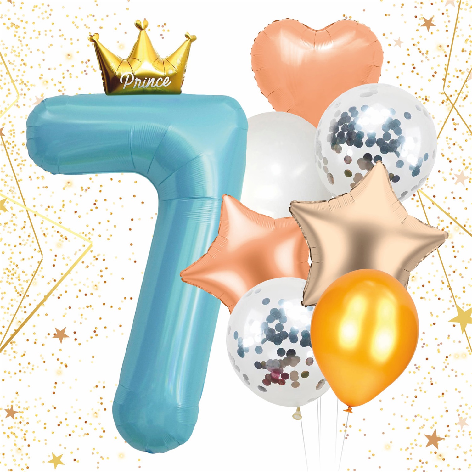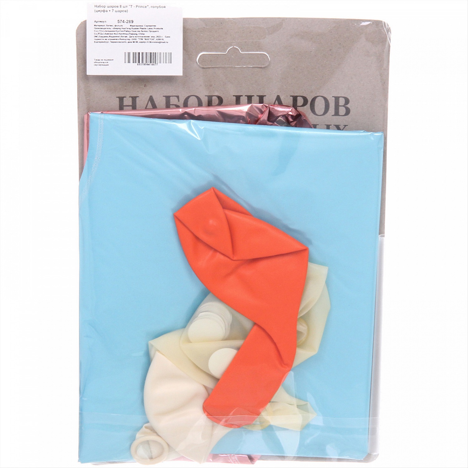 Набор шаров 8 шт "7 - Prince", голубой (цирфа + 7 шаров)