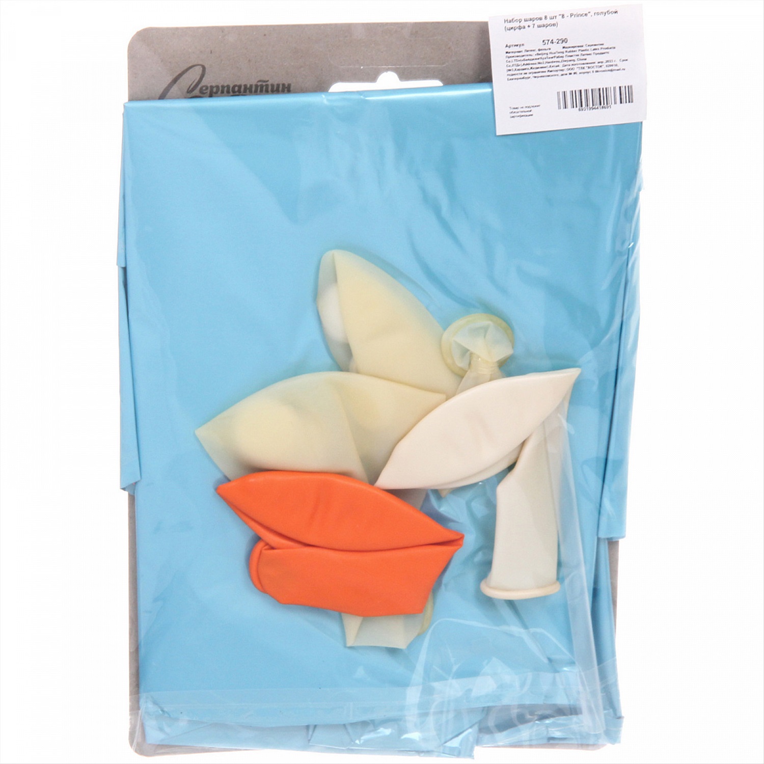 Набор шаров 8 шт "8 - Prince", голубой (цирфа + 7 шаров)