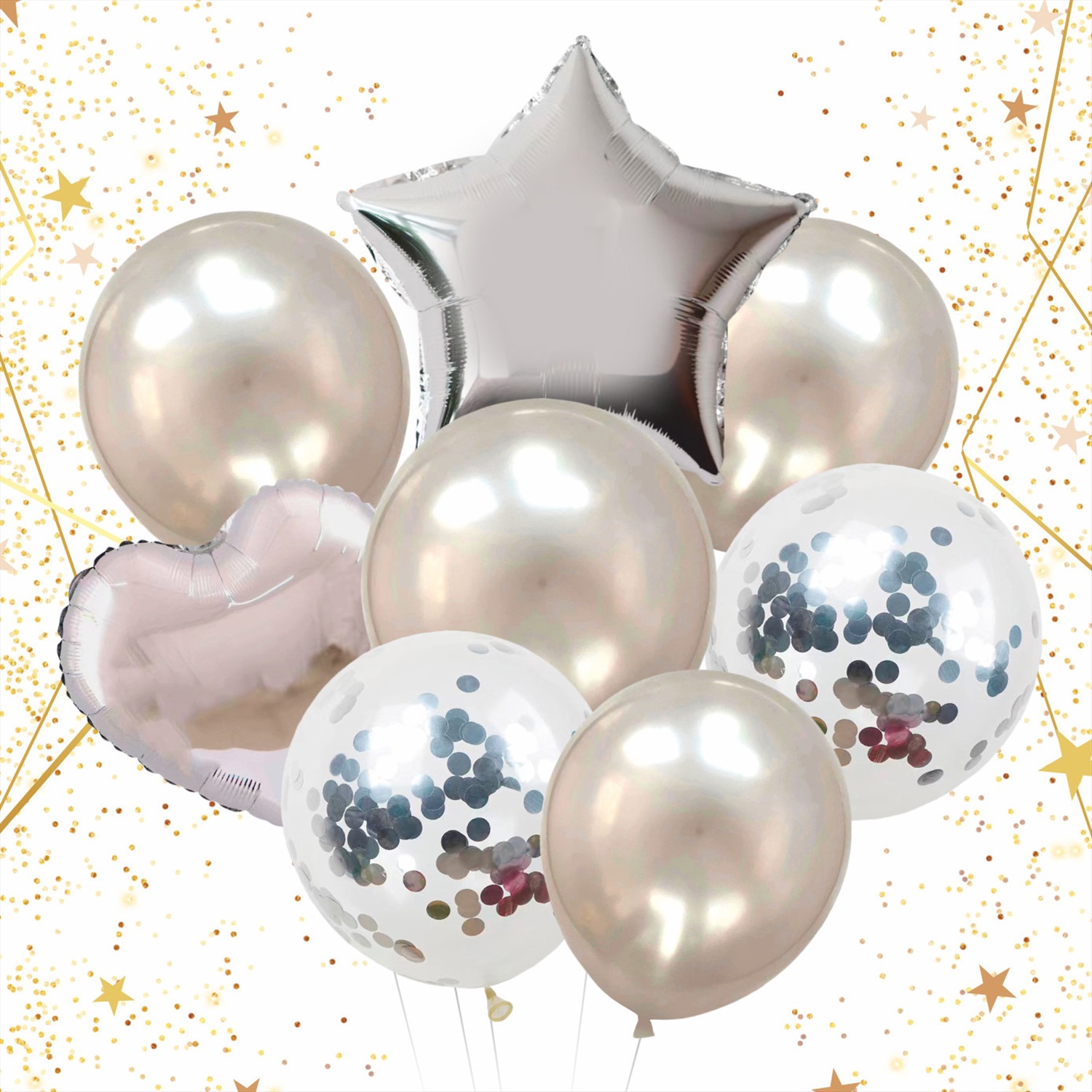 Бренд: Серпантин; Индивидуальная упаковка: Пакет с вкладышем; Материал: Латекс, фольга; ШтрихКод: 6931994418776; Страна происхождения: Китай; Количество в коробке: 500; Количество предметов в наборе: 8; Цвет: В ассортименте; Вид: Букет шаров; Рисунок: Нет