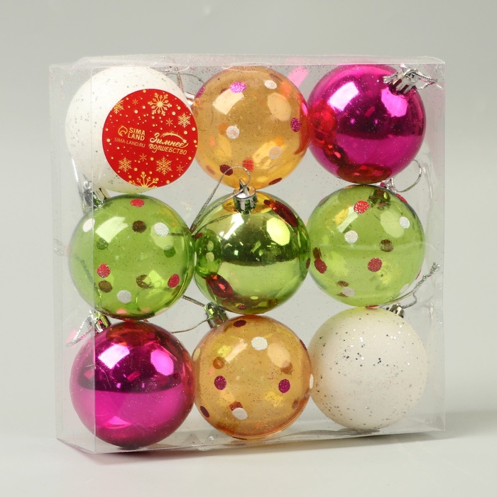 Создаём праздничное настроение Эти шары наполняют интерьер игрой света и цвета, подчёркивая атмосферу веселья и уюта. Их рисунки добавляют характер и динамику, помогая сделать новогоднюю ёлку запоминающейся и оригинальной. Такой набор станет отличным выбором для тех, кто ищет стильный и необычный декор для зимних праздников. КомплектацияНабор шаров - 9 штук. Комментарии к товару