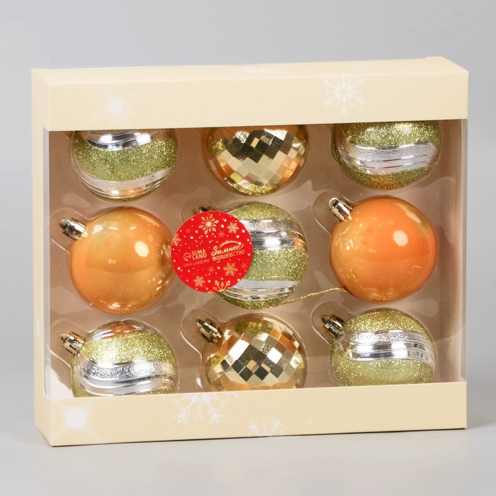 Праздничное настроение Эти шары наполняют пространство яркостью и динамикой, отражая свет гирлянд и создавая атмосферу торжества. Их дизайн помогает сделать новогодний декор выразительным и современным, сохраняя дух традиций. КомплектацияНабор шаров - 9 штук. Комментарии к товару