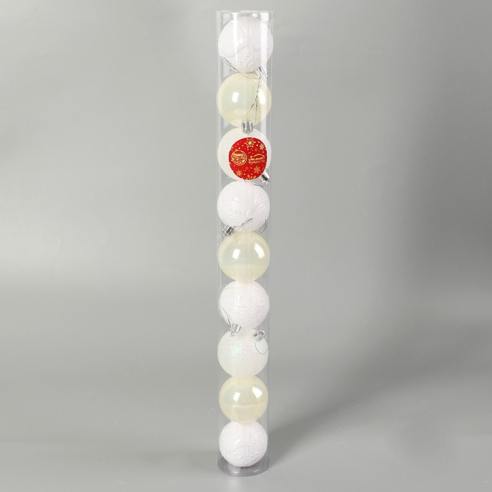 Праздник в деталях Этот набор создан для тех, кто любит чувствовать стиль даже в мелочах. Белые шары с рисунком не требуют ярких акцентов, но при этом создают ощущение завершённого образа. Они подходят как для первого украшения ёлки, так и для дополнения уже сложившейся традиции. Такие игрушки делают праздник близким по духу вашему дому. КомплектацияНабор шаров - 9 штук. Комментарии к товару