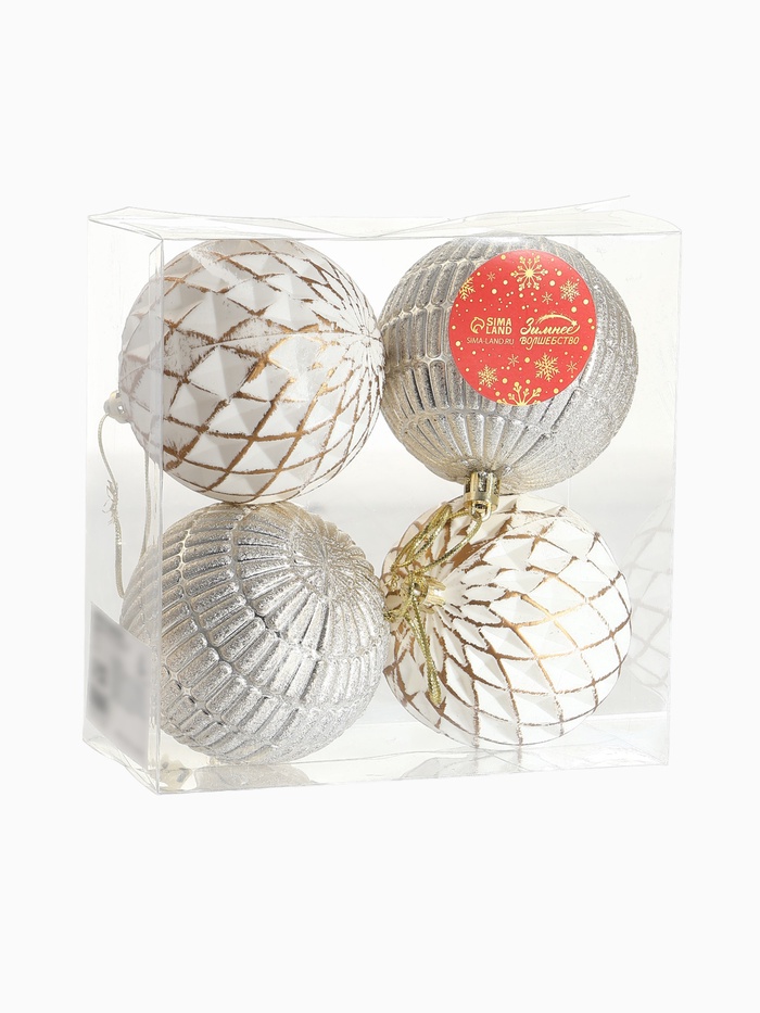 Ёлочные игрушки «Авива», шары новогодние, набор 4 шт., d=8 см, сетка, золотистый