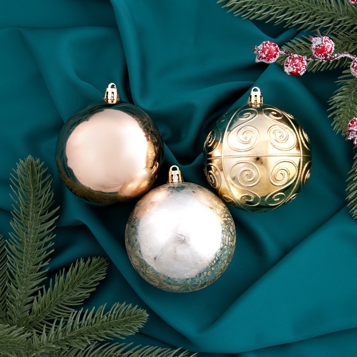 Эти шары гармонично сочетаются с различными элементами декора, создавая атмосферу уюта и изящества. Их золотистый оттенок напоминает о тепле огней и богатстве зимних праздников, помогая оформить ёлку сдержанно, но выразительно.