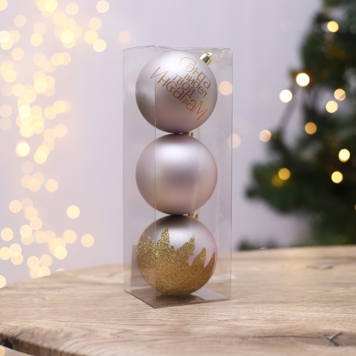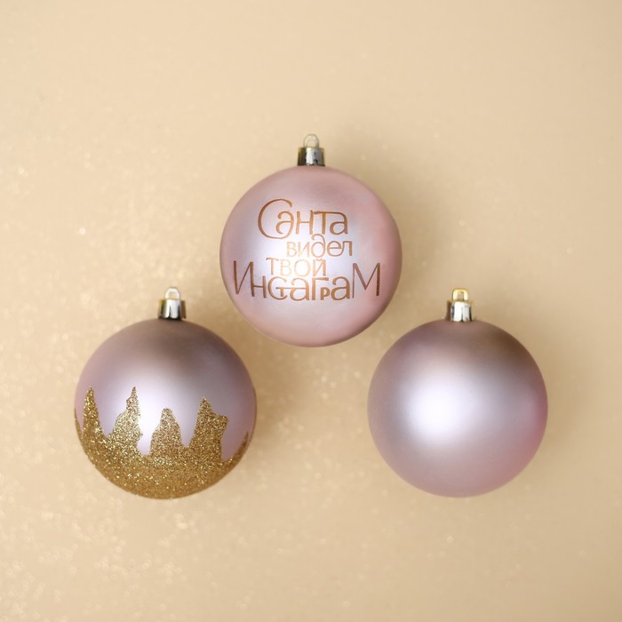 Новогодние шары ёлочные «Санта видел твой Инстаграм», пластик, d=8, 3 шт., розовые