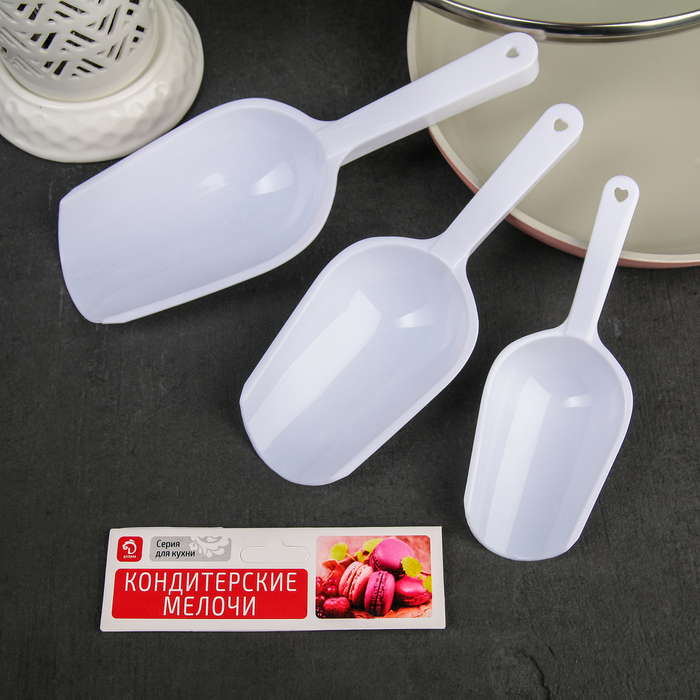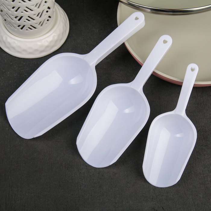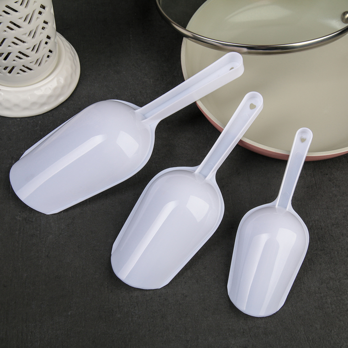 * Удобные размеры: Три совка разного объема помогут вам быстро и удобно переносить нужные ингредиенты, не загромождая рабочую зону на кухне.