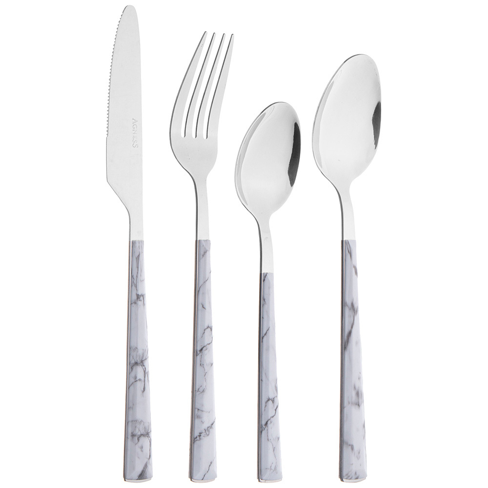 Набор столовых приборов AGNESS не только прекрасно выглядят, но и обладают отличной функциональностью. Вилки и ложки имеют комфортные ручки, которые удобно держать в руке. Каждый предмет выполнен из нержавеющей стали , что обеспечивает долговечность и устойчивость к коррозии. Набор столовых приборов является отличным выбором для кухни, где они могут быть использованы в повседневной жизни или во время особых событий и праздников. Они также подходят для ресторанов и кафе, добавляя шарма и элегантности к сервировке стола. Благодаря своей прочности и изысканному дизайну, этот набор столовых приборов станет вашим надежным и стильным спутником на многие годы.Чтобы приборы прослужили долго необходимо соблюдать ряд правил по уходу: использовать мягкие материалы, щадящие моющие эко вещества, замачивать застарелые пятна, исключая механическое воздействие. Запрещается использовать абразивные и хлоросодержащие средства.