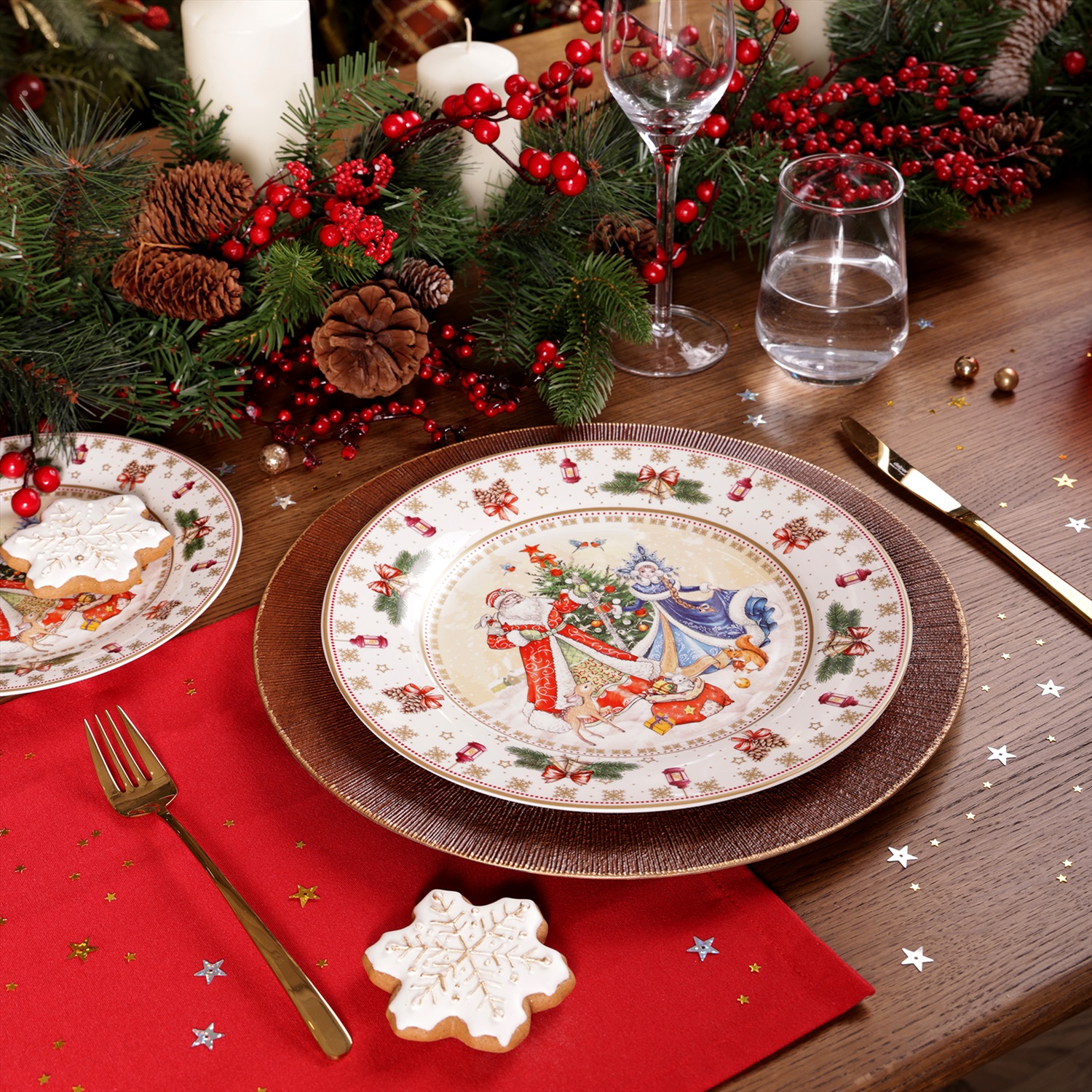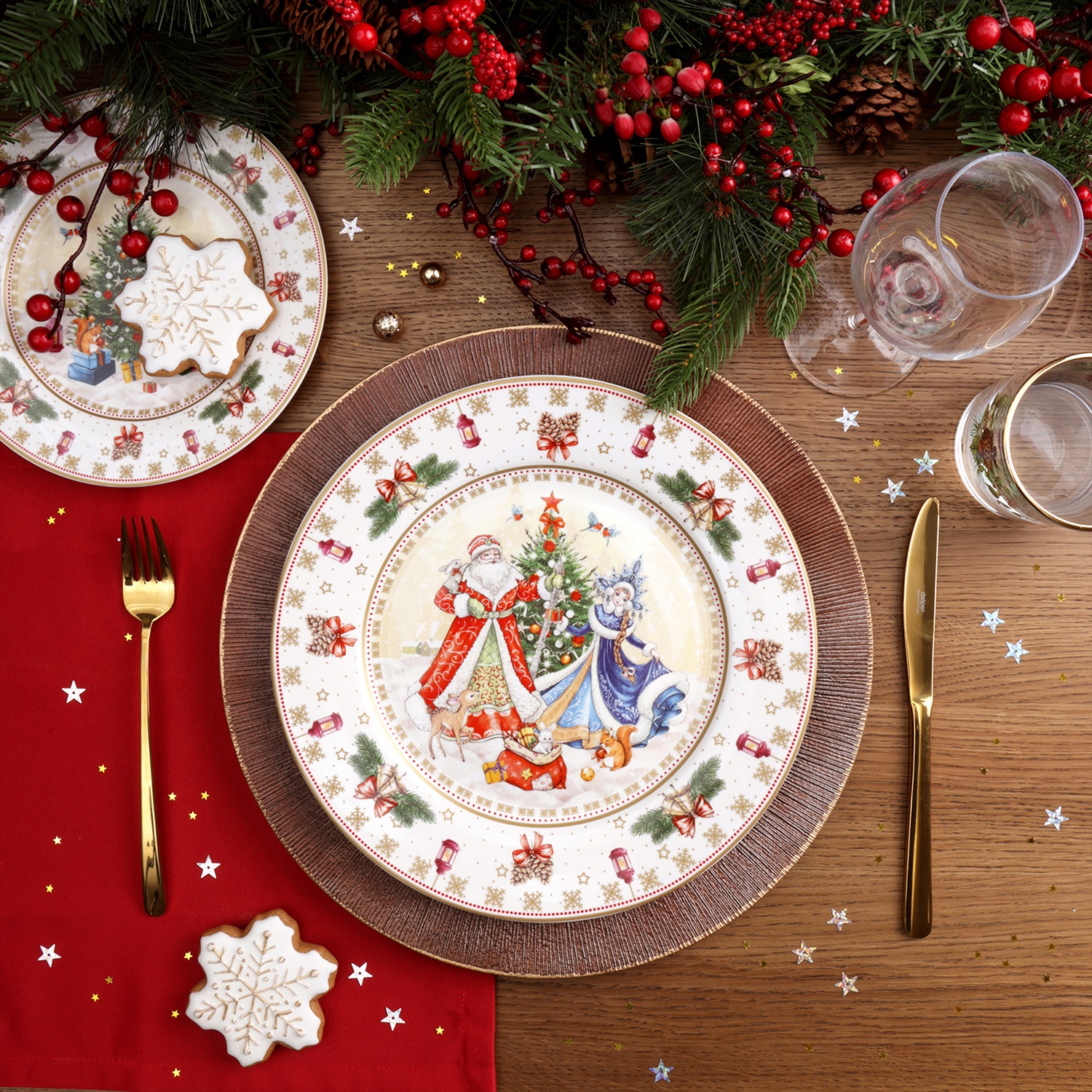 ТМ LEFARD New Year Collection готовы украсить праздничный новогодний стол и радовать всех в самые ожидаемые дни в году. С 1699 года указам Петра Первого Новый год празднуется в ночь на 1 января каждого года (по юлианскому календарю). Символом праздника стал дедушка с белой бородой, имя которого - Дед Мороз, и его помощница - девочка из снега по имени Снегурочка. Изделия с любимыми персонажами и нарядной новогодней Елкой выполнены на тонкостенном высококачественном фарфоре. Посуда упакована в яркие коробки. Это прекрасный подарок. Продукция прошла сертификацию, безопасна для контакта с пищевыми продуктами. Можно использовать в СВЧ, не рекомендуется мыть в посудомоечных машинах во избежание повреждения золотой отводки (деколи) на изделиях.