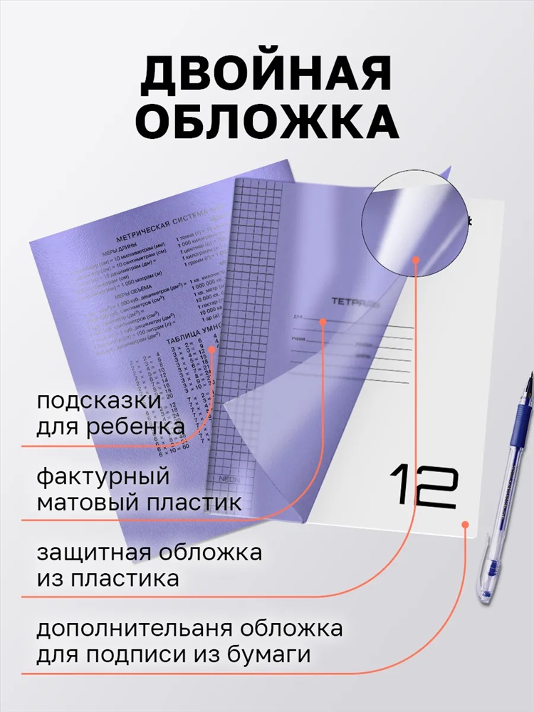 Модель: Набор тетрадей с пластиковой обложкой, 10шт 60991 Тип товара: тетрадь Бренд: Без бренда Стиль: для школы Тетрадь с пластиковой обложкой12 листов в клетку 10шт в упаковке это надёжная защита и стильный дизайн в одном решении. Тетрадь оснащена двойной обложкой: прочный пластик снаружи и гладкая мелованная бумага внутри. Тетрадь сохранит школьные записи в идеальном состоянии и защитит от любых неприятностей: влаги, царапин и замятия в рюкзаке или ранце. Вам больше не придётся тратиться на приобретение отдельных обложек. Пластиковая обложка имеет оптимальную плотность 180 мкм: достаточно прочная для надёжной защиты, но при этом гибкая и безопасная даже для самых маленьких школьников. Таблица размеров и веса