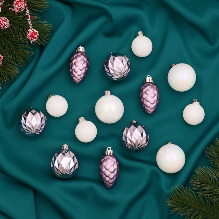 Габариты: 14 x 9,5 x 9,5 Страна: Китай В боксе: 72 набор В наборе: 21 набор Состав: Пластик Материалы: пластик Фасовка: по 1 набор Индивидуальная упаковка: PVC коробка Сертификат: Не подлежит сертификации Набор: Да Цвет: МИКС, Белый, Сиреневый Диаметр шара, см: 3, 4,5 В наборе, шт.: 21 Рисунок: Да Символ года: Нет Тематика праздника: Новый год Материал: Пластик Стиль: Шебби-шик Фиксированная цена: Да Набор декоративных шишек в стиле шебби-шик объединяет 21 элемент разного размера и нежной цветовой гаммы — белого и сиреневого оттенков. Такие украшения создают лёгкую и изысканную атмосферу зимнего праздника, дополняя интерьер естественной текстурой и мягкими цветами. Особенности
