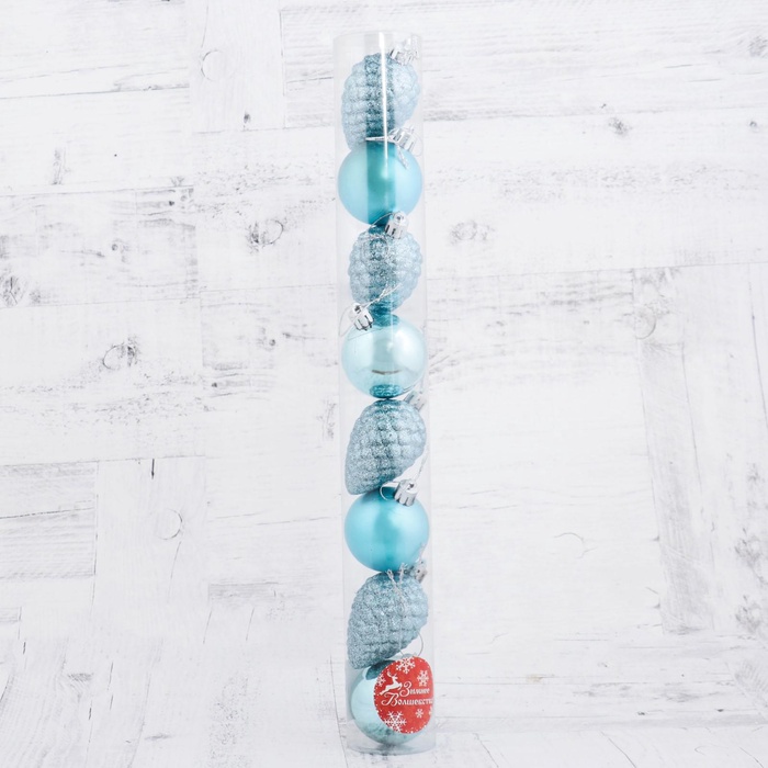 Праздник начинается с первого холодного блика Этот набор превращает ёлку в пространство зимнего покоя и доброжелательного торжества. Голубой цвет и разные формы работают вместе, чтобы сделать дерево частью вашей семейной истории. Используйте его как основу или как дополнение к другим игрушкам — он одинаково хорошо передаёт дух Нового года и тепло предпраздничных дней. Комментарии к товару