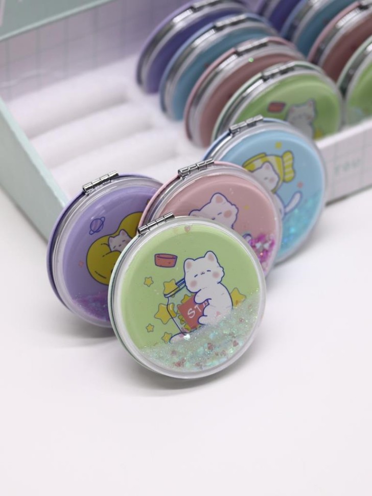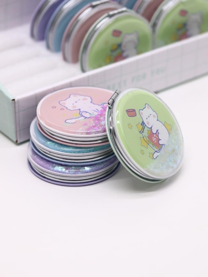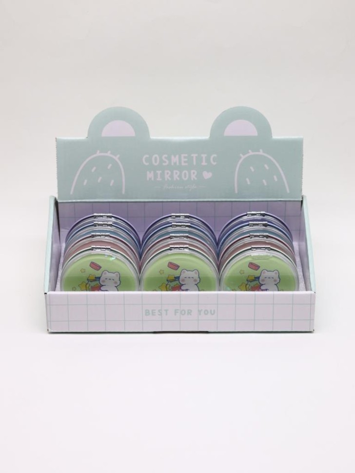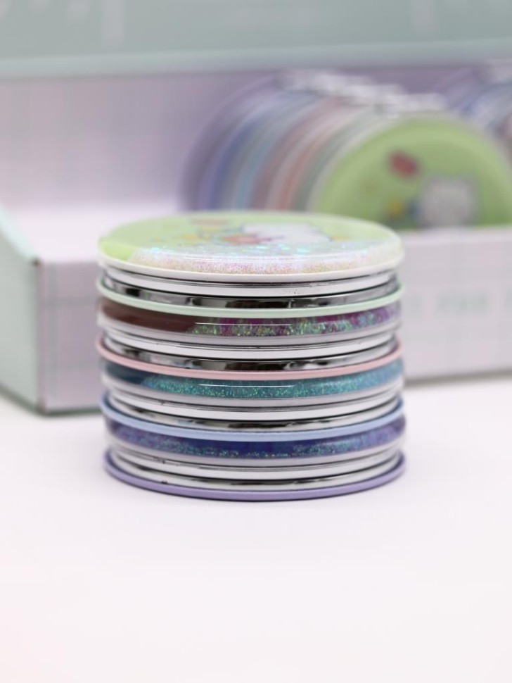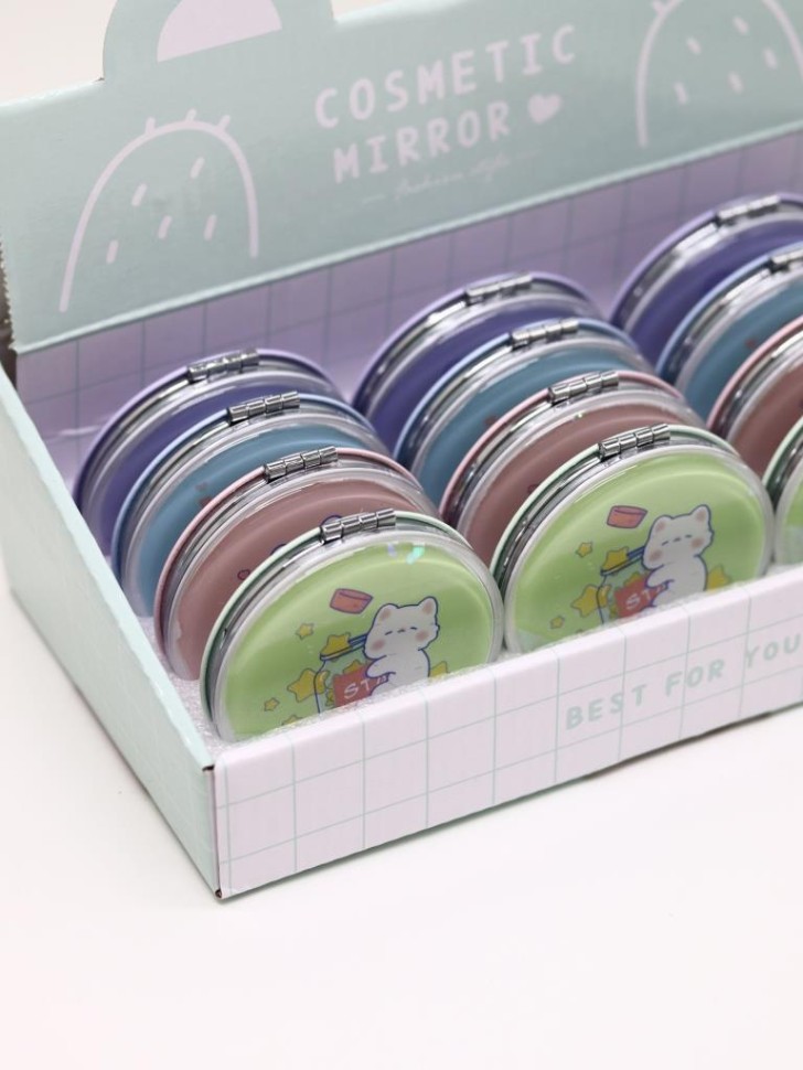 Ширина, см: 7,0 Высота, см: 7,0 Страна производства: Китай Размер упаковки, см: 7 × 7 × 1.2 Материал: Стекло, металл Штрихкод: 4670284422537 Индивидуальная упаковка: Картонный бокс Оригинальный набор зеркал в картонном шоу-боксе. В каждом шоу-боксе 12 штук зеркал 4-х цветов, по 3 шт. каждого цвета из данной серии. Стильное, карманное складное зеркальце, изготовленное в ярком и интересном дизайне, станет прекрасным украшением женской сумочки. Зеркальце обрамлено металлической рамкой. На лицевой стороне располагается оригинальный, герметичный отсек с водой и блёстками. Внутри установлено как обычное, так и зеркало с двойным увеличением. Яркий шоу-бокс необычной формы обязательно привлечёт к себе внимание и расположит к покупке. Комментарии к товару