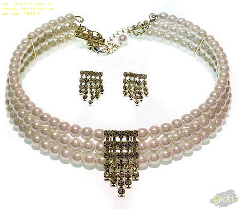 Элегантный комплект из белоснежного искусственного жемчуга и сверкающих кристаллов. Колье выполнено в виде гибкого обруча высотой 2 см, длиной 33 см + 7 см удлиняющая цепочка делающая колье безразмерным. Удобно и комфортно прилегает близко к шее. Диаметр жемчужин на колье 6 мм. Серьги размером 2,3 см х 1,2 см, гвоздики .
