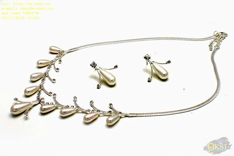 Эффектный жемчужный комплект '' Веточка '', украшен сверкающими кристаллами. Длина колье 45 см + 5 см цепочка ( общая длина 50 см ). Длина сережек 2,5 см. Качественное гальваническое покрытие серебряного цвета. Тип украшения: жемчужное колье серьги Тема: Модные украшения из жемчуга Жемчуг является уникальным украшением подходящим под любой цвет одежды Для получения дополнительной информации посетите сайт товара. Жемчуг является уникальным украшением подходящим под любой цвет одежды