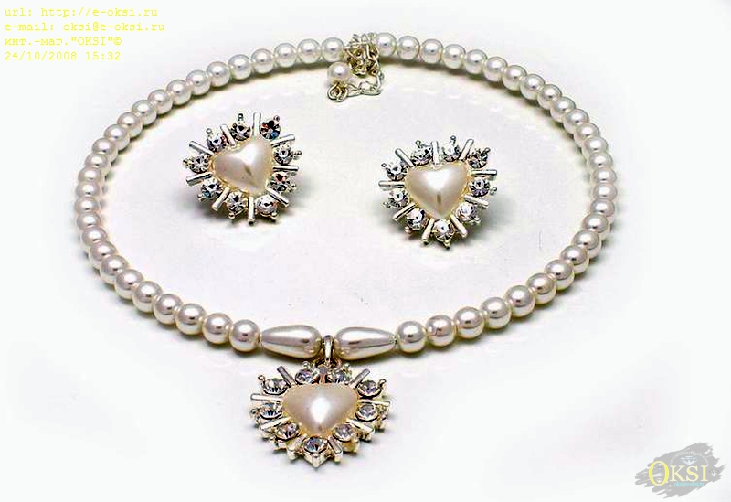 Элегантный комплект из белоснежного искусственного жемчуга. Колье выполнено в виде гибкого обруча высотой 0,8 см, длиной 33 см + 7 см удлиняющая цепочка делающая колье безразмерным. Удобно и комфортно прилегает близко к шее. Диаметр жемчужин 8 мм. Серьги гвоздики размером 2,5 см х 2,5 см.