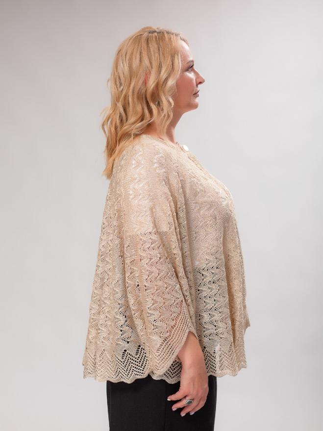 Состав: акрил 88%,нейлон 12% Страна производства: Россия Цвета: бежевый Накидка женская Изысканная ажурная накидка-пончо станет ярким акцентом в любом праздничном наряде, а ее элегантный дизайн несомненно обратит на Вас внимание окружающих. Пончо, за счет свободного кроя и глубокой проймы отлично подойдет женщинам с разным размером и фигурой. Эта удобная модель прекрасно впишется в любой праздничный гардероб. Модель представлена без рукавов. Комментарии к товару