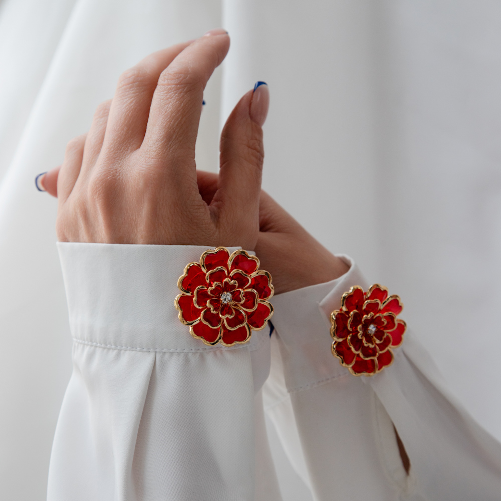 Тип изделия: nakladka-dlya-pugovicy; Проба: Биж.сплав гальван.покр.; Коллекция: Ботаника, Цветные вставки; Вставка: Ювелирное Стекло