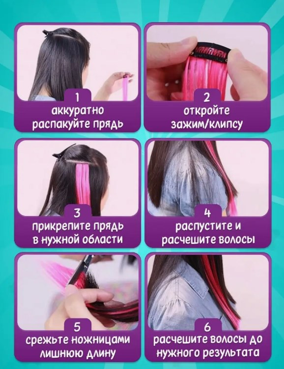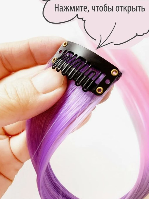 Цветные локоны на заколках как никогда актуальны. Цветные пряди на заколке стильные, модные аксессуары для волос. Цветной канекалон подходит как для взрослых, так и для детей.Если Вы не готовы окрашивать волосы в ультраяркие цвета, использовать мелки для волос и подвергать опасности здоровье Ваших волос, в этом случае цветные пряди на заколках подойдут для Вас идеально! Или если ребенок подросток мечтает о цветных волосах, а маленькая девочка мечтает о радужных волосах как у любимой принцессы на помощь придет набор прядей на заколке. Пряди волос просты в эксплуатации, комфортны в носке.Заколку для волос нужно закрепить ближе к пробору и закрыть прядкой собственных волос, что поможет скрыть заколочку, а окружающим останется лицезреть яркую цветную прядь волос. При аккуратном закреплении искусственную прядь вполне можно принять за натуральную окрашенную. Накладные волосы легко расчесываются с помощью любой имеющейся расчески. Прядку лучше расчесывать с низу и постепенно переходя вверх к заколке. Пряди можно завивать и выпрямлять по средствам термо приборов ( максимальная температура прибора 110-120 градусов). Как и натуральные волосы, пряди на заколках можно моделировать в различные прически для украшения волос, плести косички и носить разноцветные волосы в хвостике. Длина пряди 48-50 см. Ширина 3,5 см.