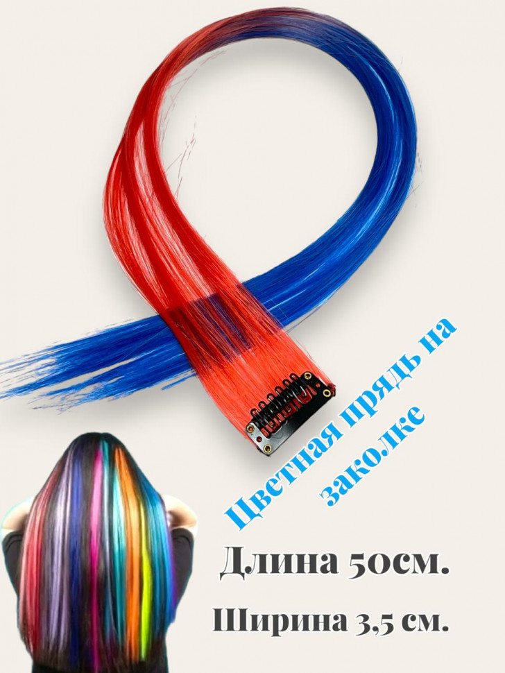 Цветные локоны на заколках как никогда актуальны. Цветные пряди на заколке стильные, модные аксессуары для волос. Цветной канекалон подходит как для взрослых, так и для детей.Если Вы не готовы окрашивать волосы в ультраяркие цвета, использовать мелки для волос и подвергать опасности здоровье Ваших волос, в этом случае цветные пряди на заколках подойдут для Вас идеально! Или если ребенок подросток мечтает о цветных волосах, а маленькая девочка мечтает о радужных волосах как у любимой принцессы на помощь придет набор прядей на заколке. Пряди волос просты в эксплуатации, комфортны в носке.Заколку для волос нужно закрепить ближе к пробору и закрыть прядкой собственных волос, что поможет скрыть заколочку, а окружающим останется лицезреть яркую цветную прядь волос. При аккуратном закреплении искусственную прядь вполне можно принять за натуральную окрашенную. Накладные волосы легко расчесываются с помощью любой имеющейся расчески. Прядку лучше расчесывать с низу и постепенно переходя вверх к заколке. Пряди можно завивать и выпрямлять по средствам термо приборов ( максимальная температура прибора 110-120 градусов). Как и натуральные волосы, пряди на заколках можно моделировать в различные прически для украшения волос, плести косички и носить разноцветные волосы в хвостике. Длина пряди 48-50 см. Ширина 3,5 см.