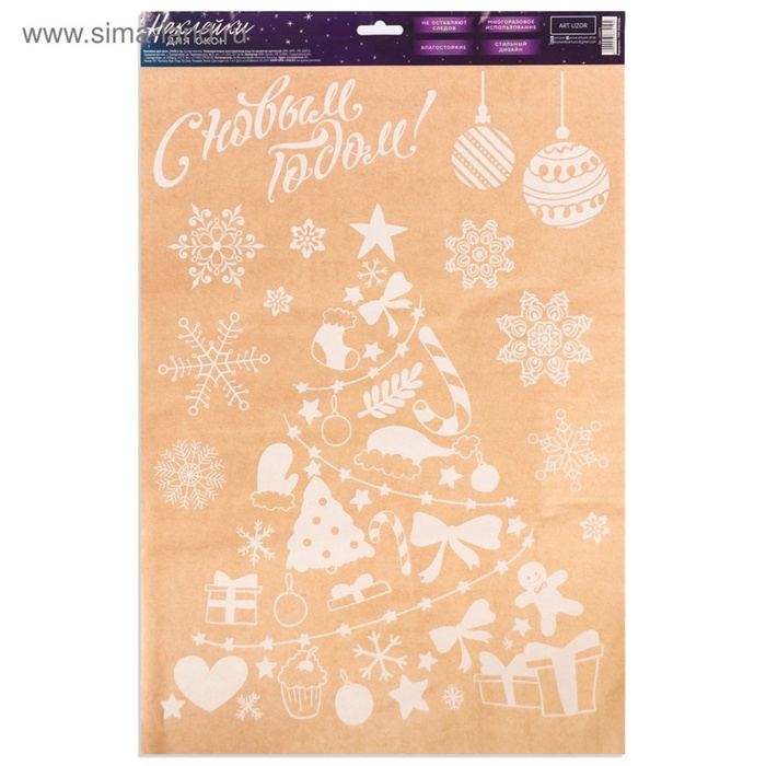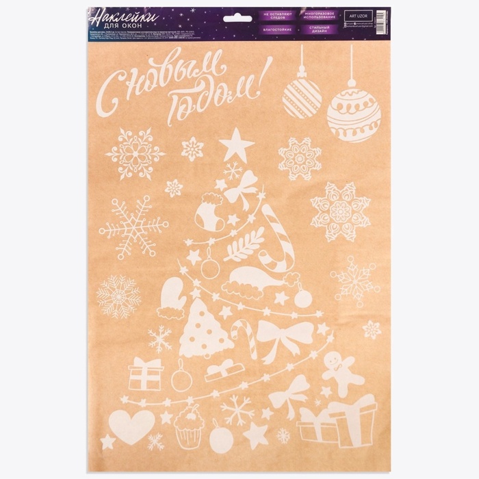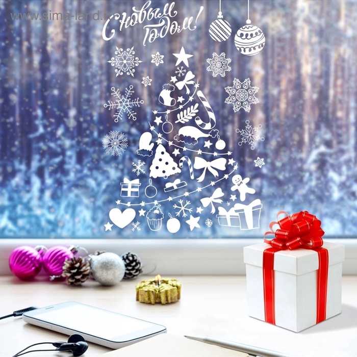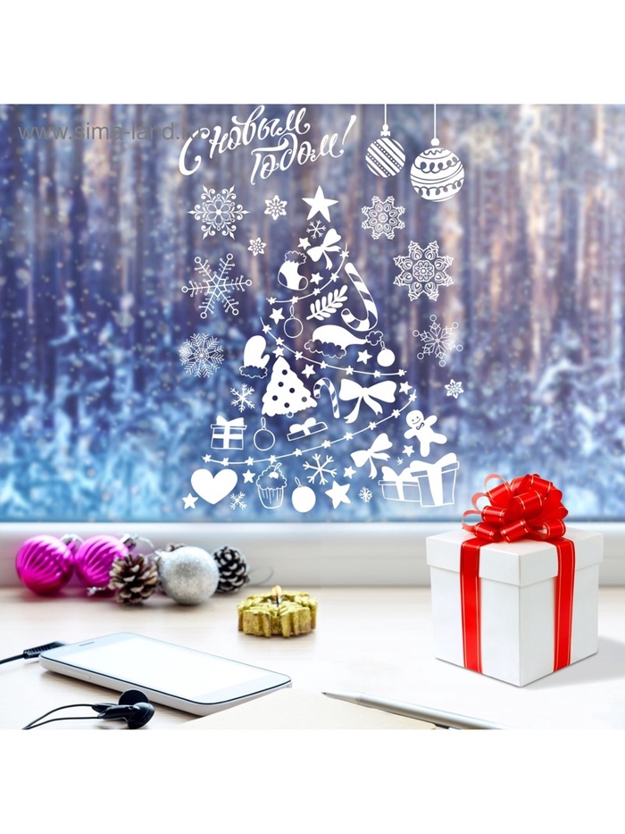 Наклейки на окна многоразовые «С Новым годом», 33 х 50 см