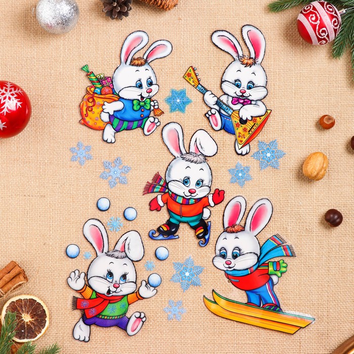 Наклейки новогодние «Новогодние зайчата» 49 х 33.5 см